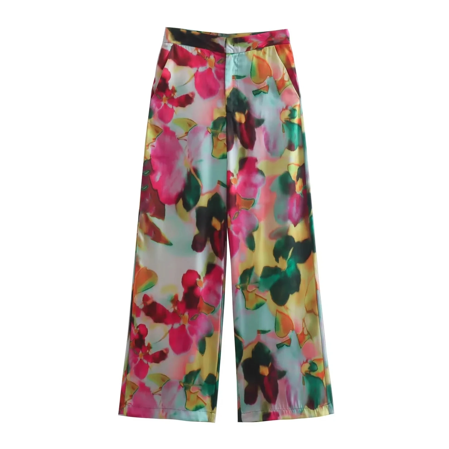 Znbbw 2023 Spring Autumn Pant Women High Waist Floral Print Casual Wide Pants Womens Streetwear Straight Trousers Women 202307