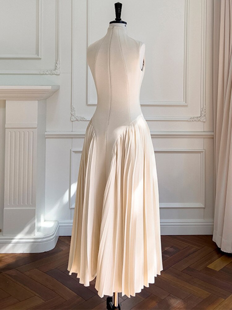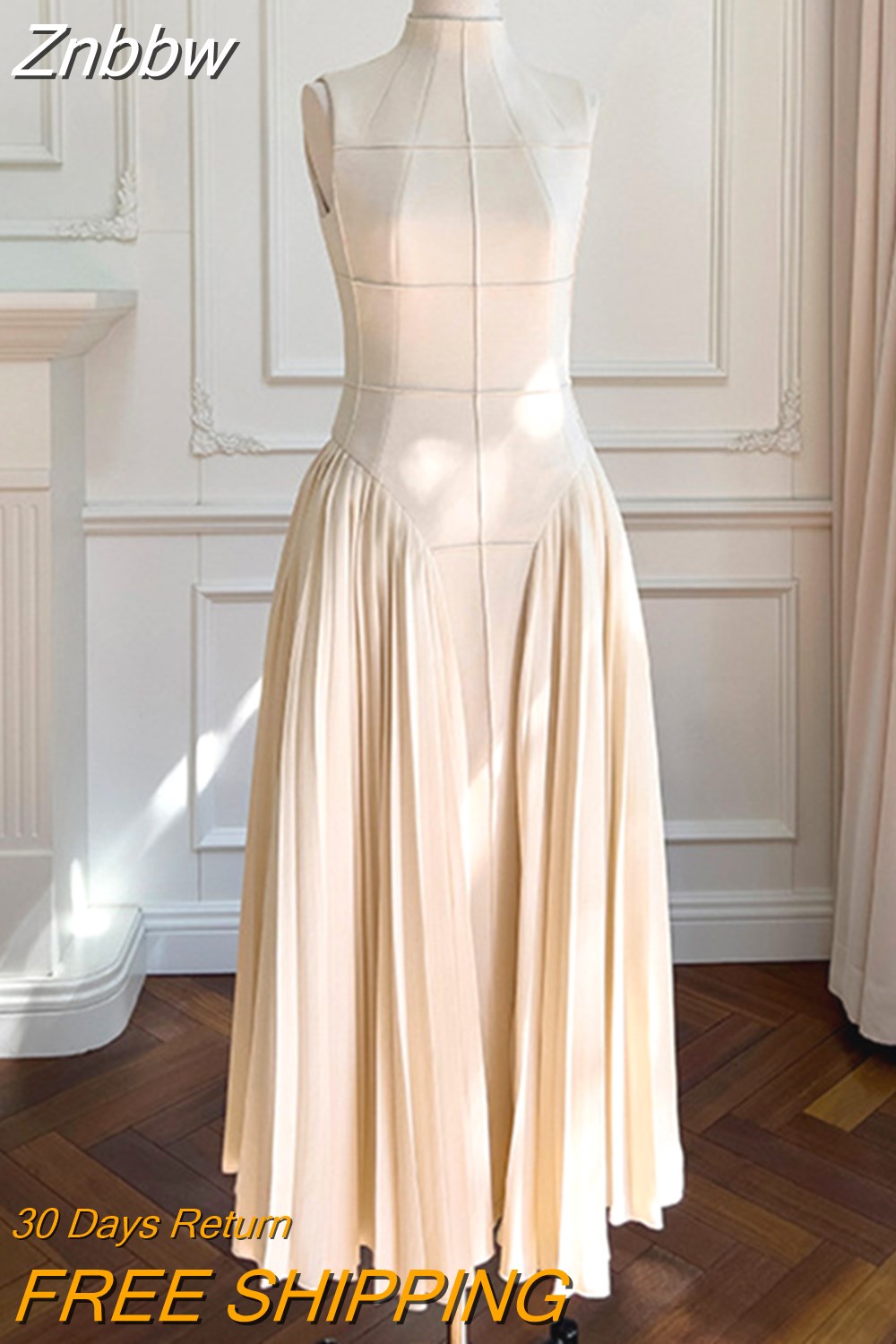 Znbbw Apricot Stand Collar Sleeveless Knit Dress For Women Robe Elegant High Quality Casual Slim Midi Dress Vestido