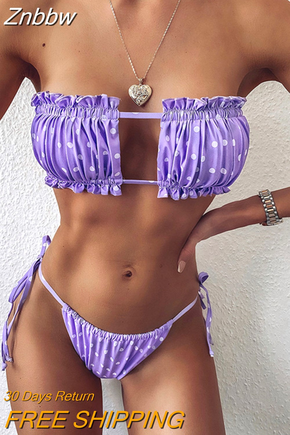 Znbbw Bikini 2023 Pleated Bandeau Swimsuit Female Swimwear Women Mini Thong Bikini Set Bather Swimming Beachwear for Bathing Suit