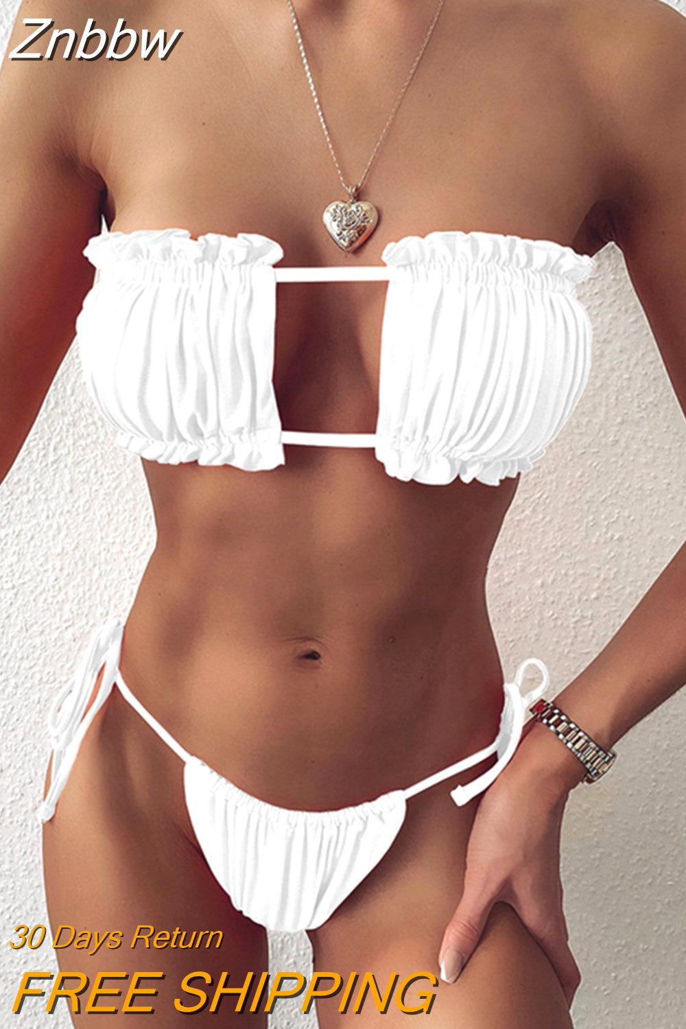 Znbbw Bikini 2023 Pleated Bandeau Swimsuit Female Swimwear Women Mini Thong Bikini Set Bather Swimming Beachwear for Bathing Suit