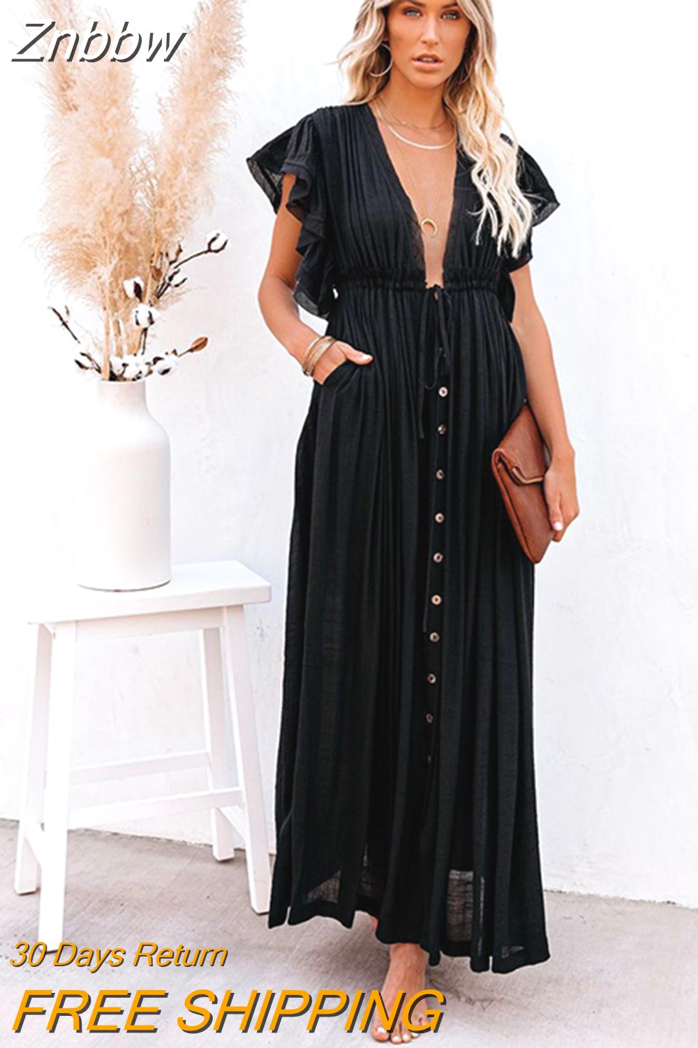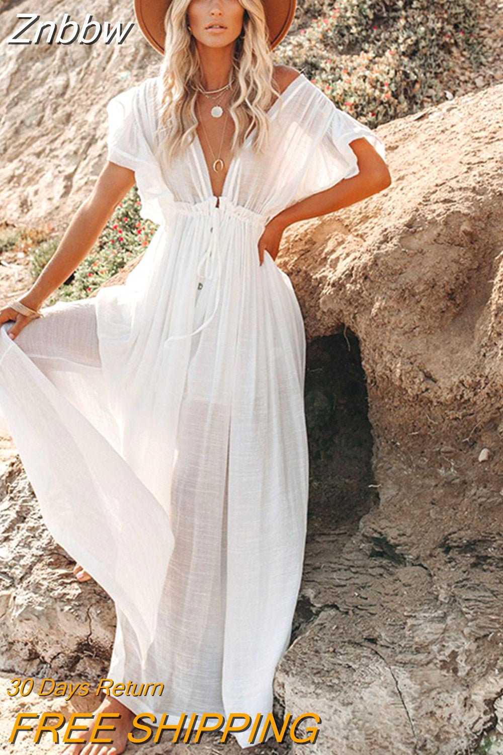 Znbbw Bikini Cover-ups Long White Tunic Casual Summer Beach Dress Elegant Women Wear Swim Suit Cover Up