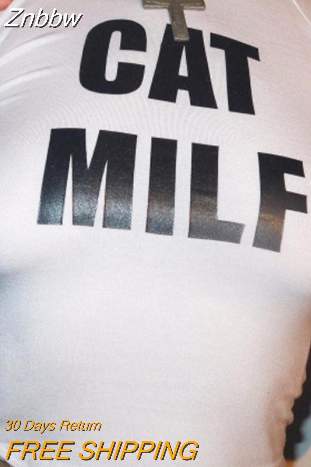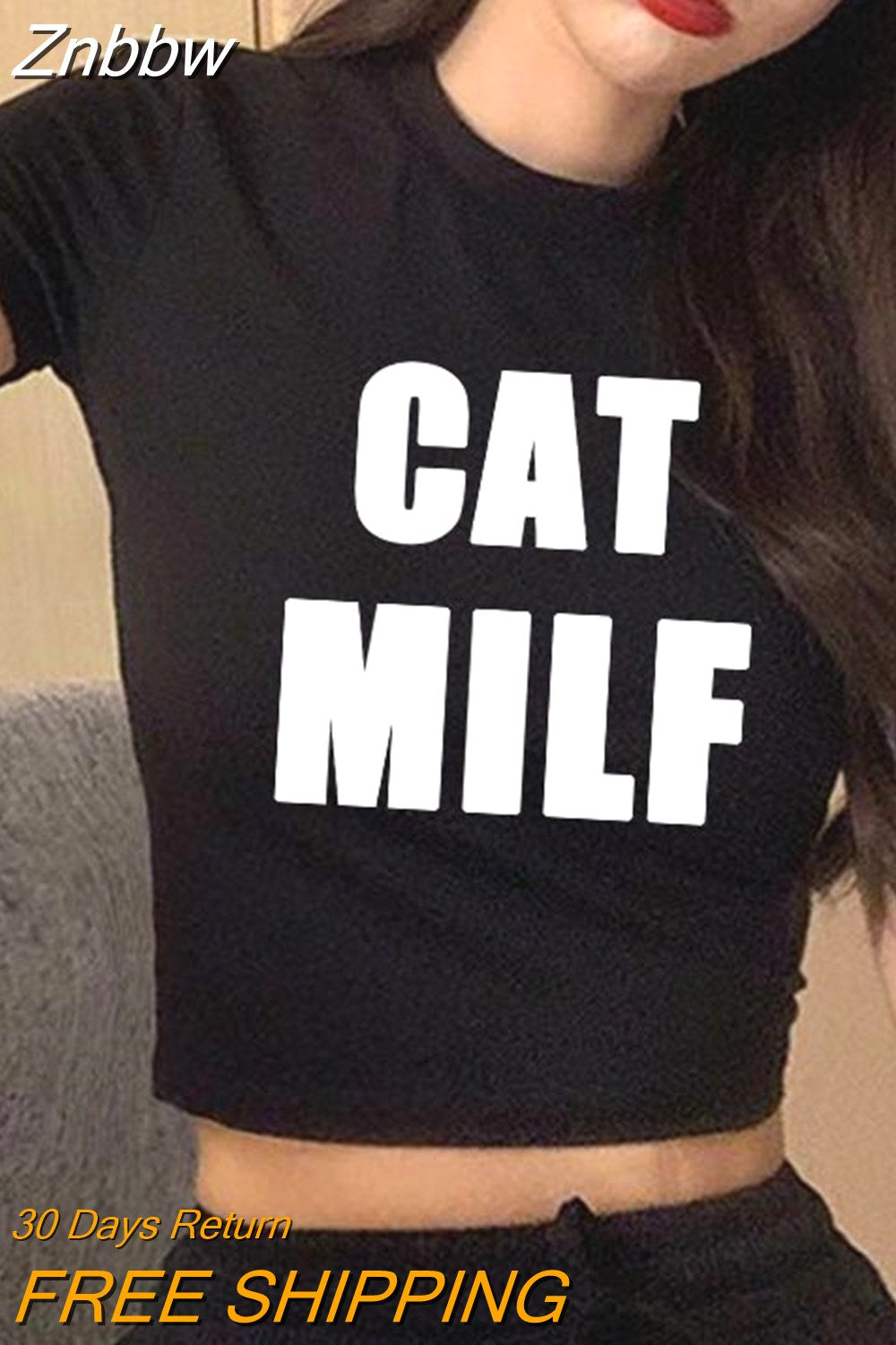 Znbbw CAT MILF Print Letter T-shirts Fashion Casual O Neck Short Sleeve Crop Tops Y2K Summer Sexy E-girl Baby Tee Women's Clothing