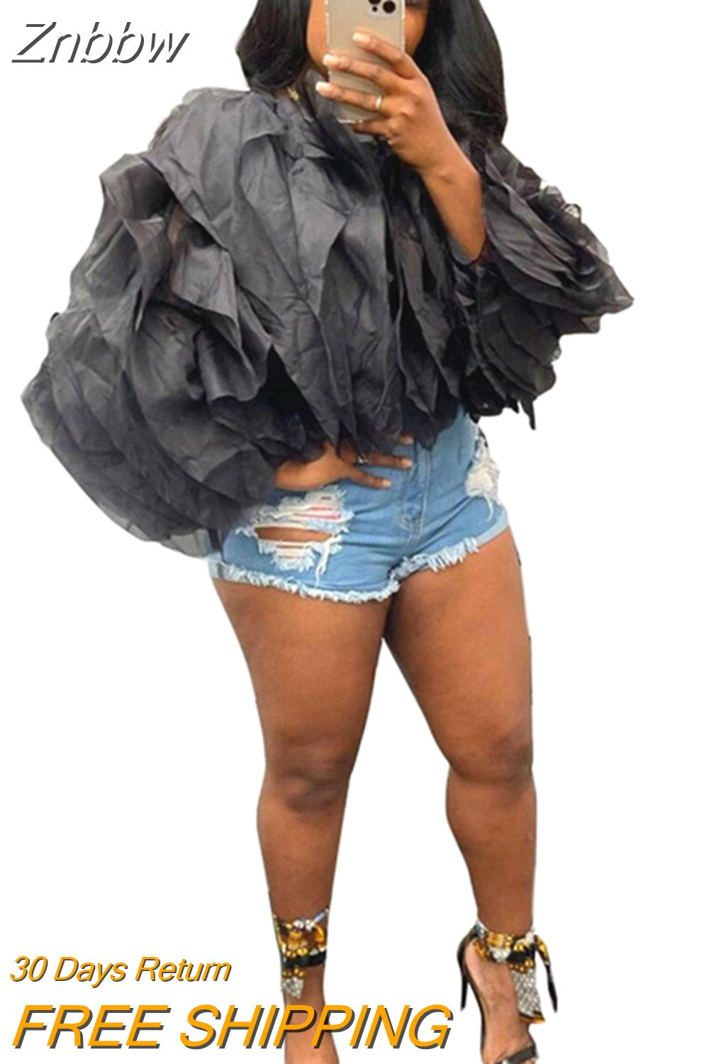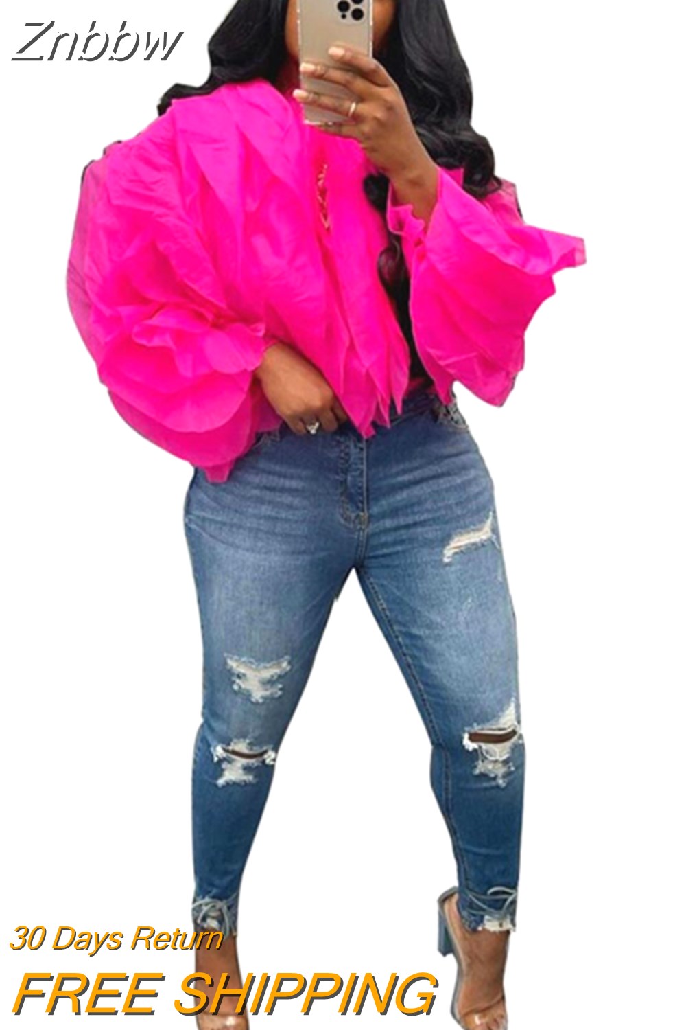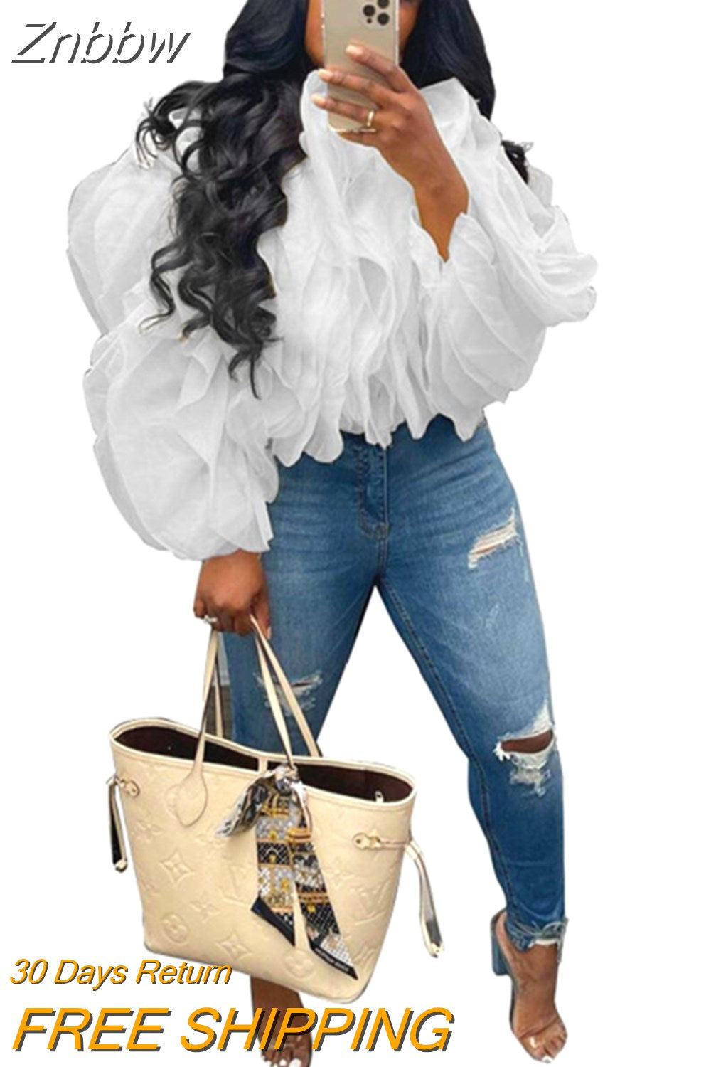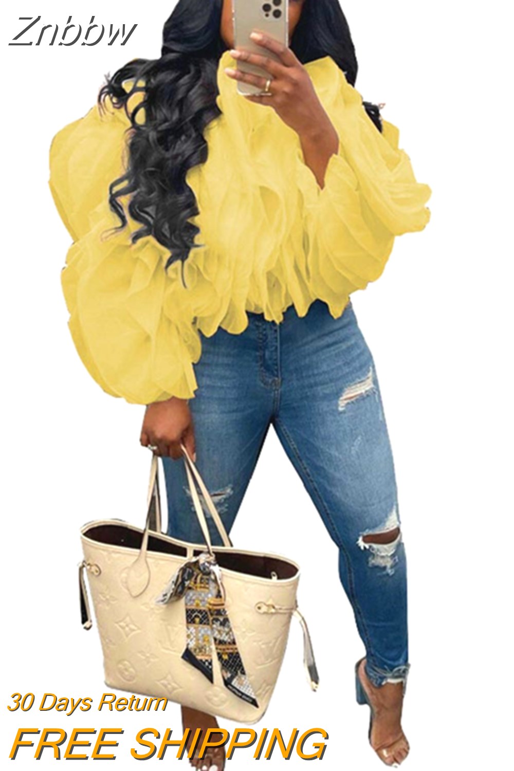 Znbbw Elegant Chiffon Puff Sleeve Crop Tops Fashion Casual Women Long Sleeve Blouses Female Sexy Ruffled Layered Shirts 2023