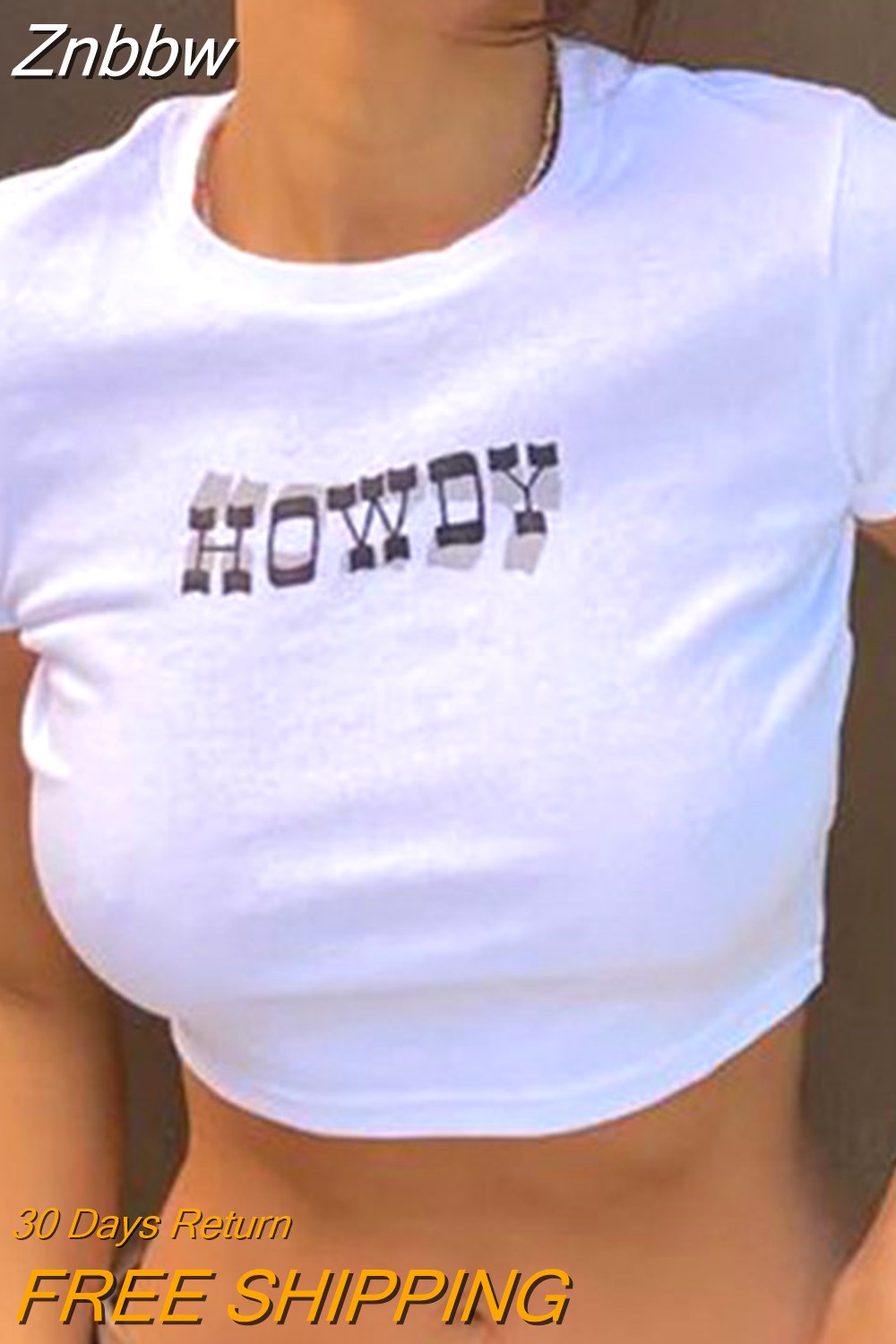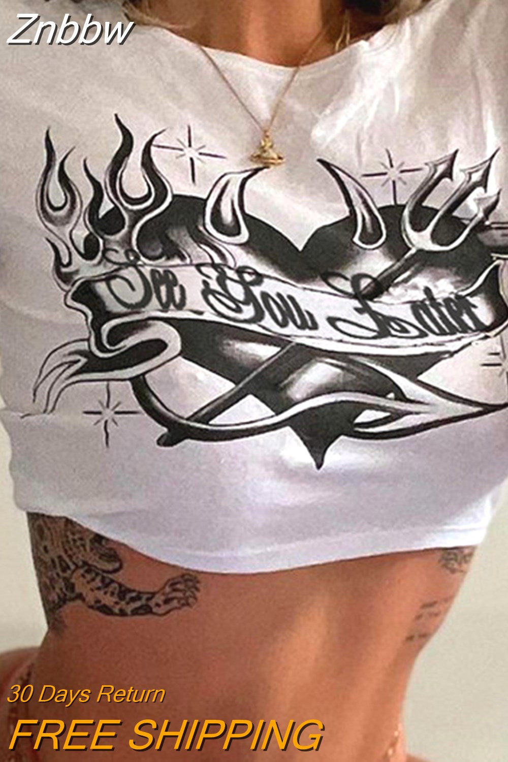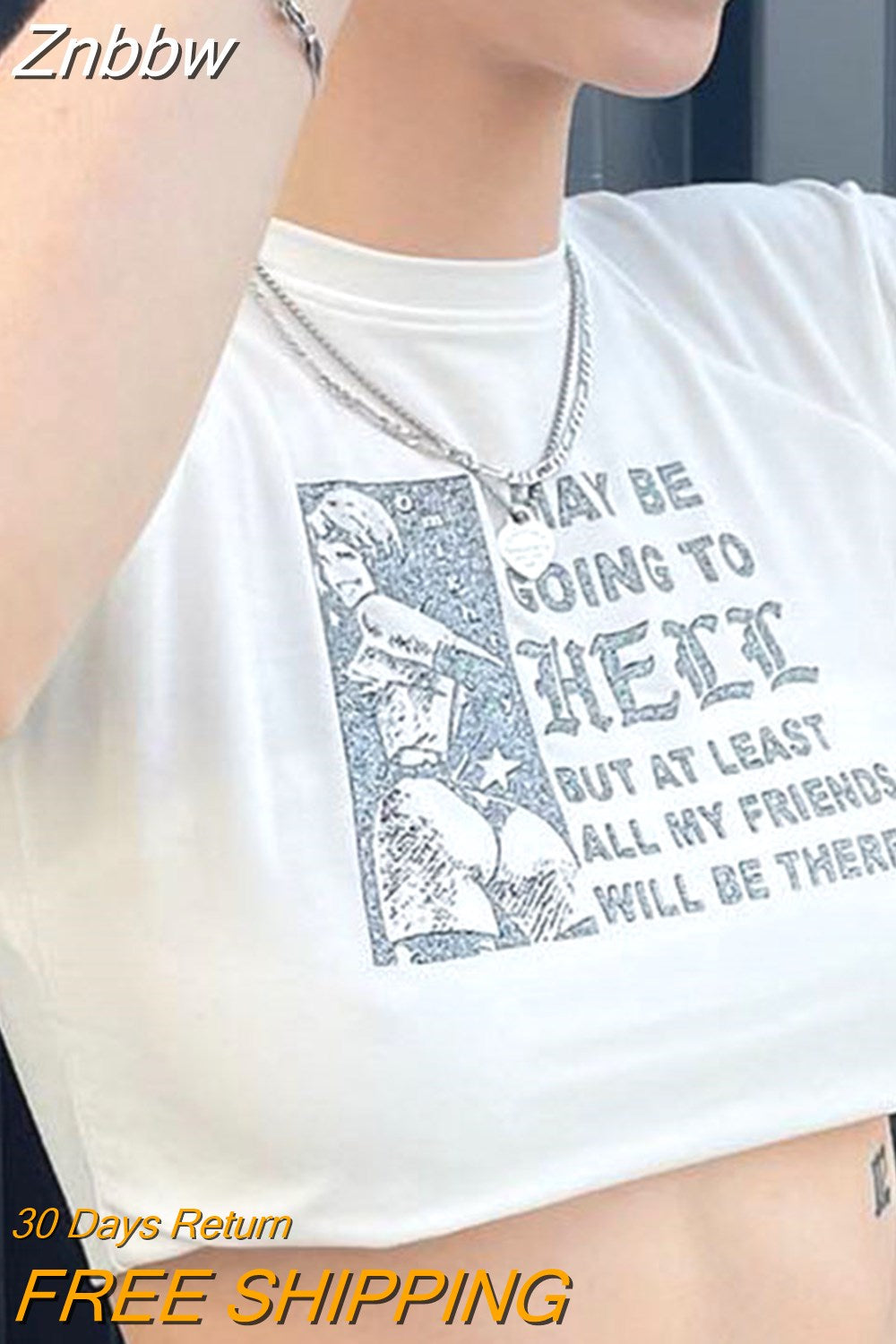 Znbbw Fashion Casual Short Sleeve T-shirt Blouses Female White Print Graphic Skinny Cropped Tee 2023 Autumn Crop Top Y2K Clothes