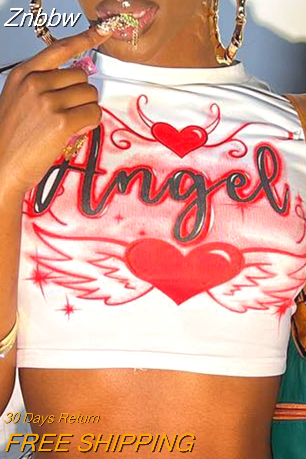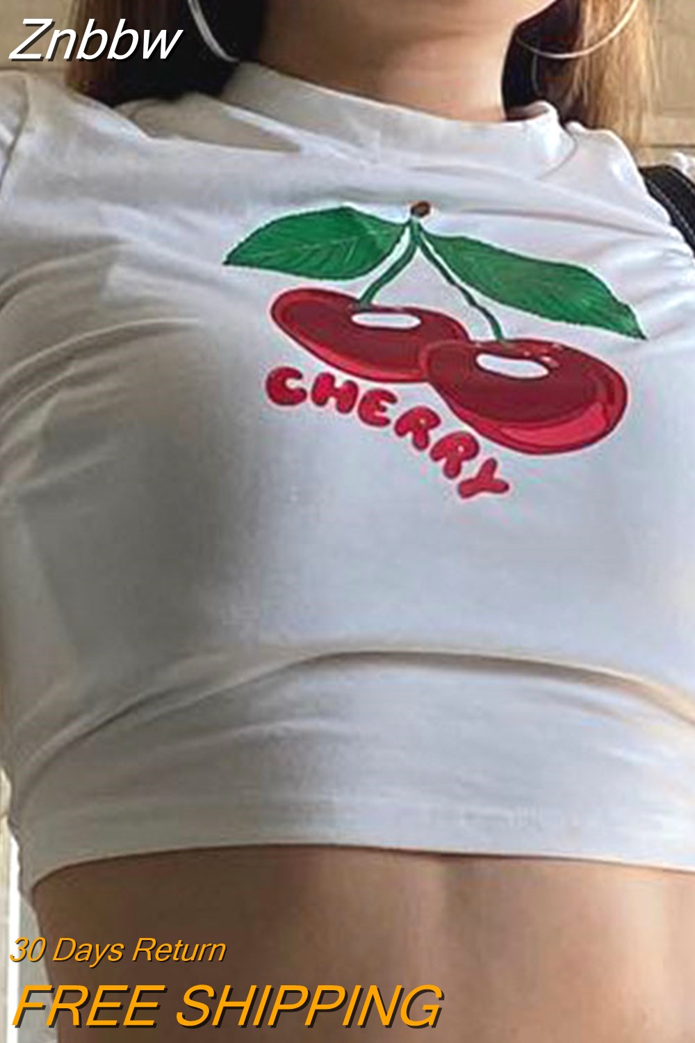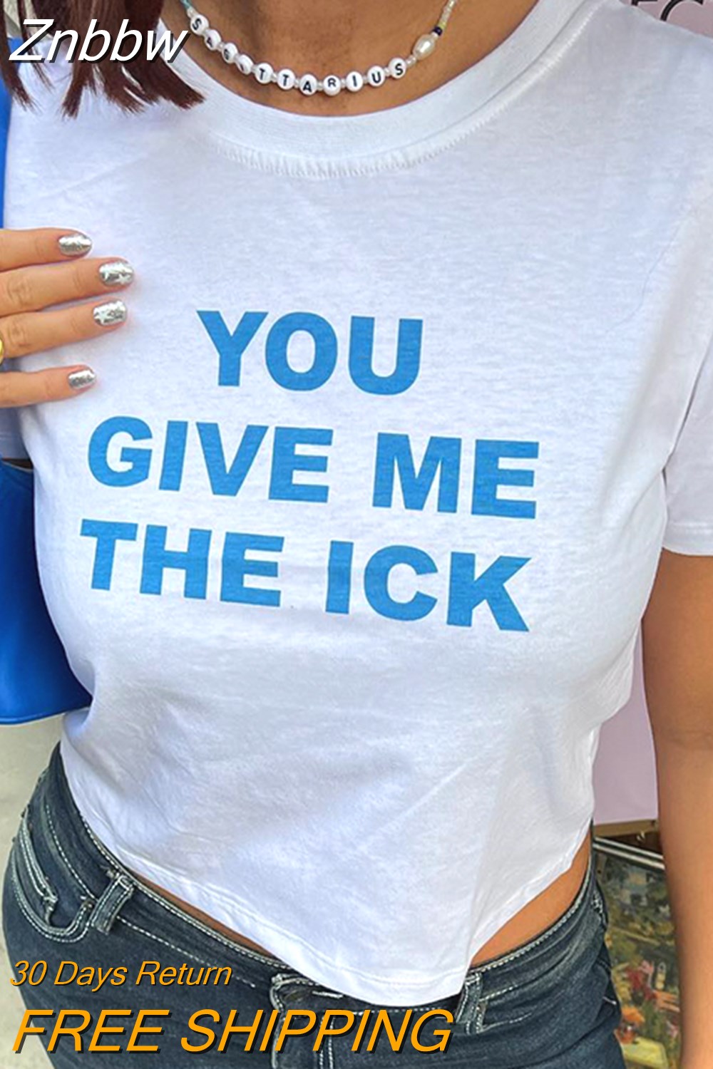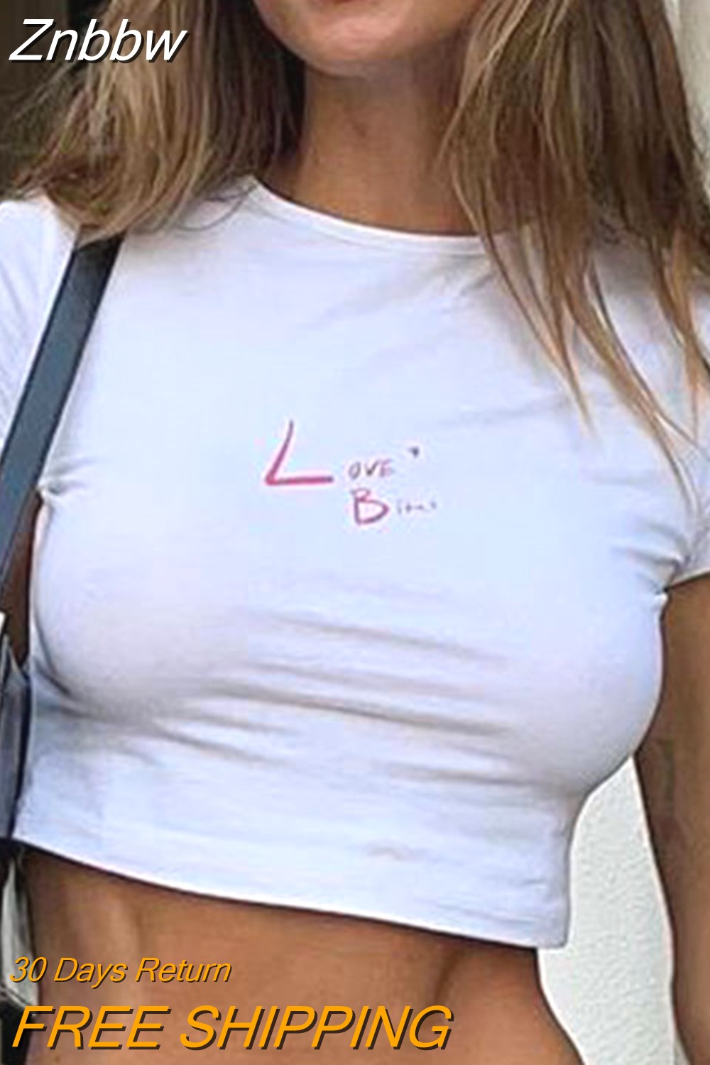 Znbbw Fashion Casual Short Sleeve T-shirt Blouses Female White Print Graphic Skinny Cropped Tee 2023 Autumn Crop Top Y2K Clothes