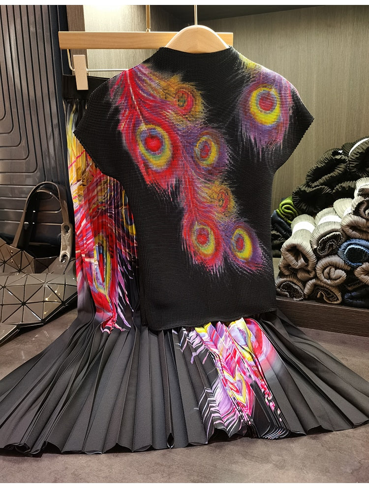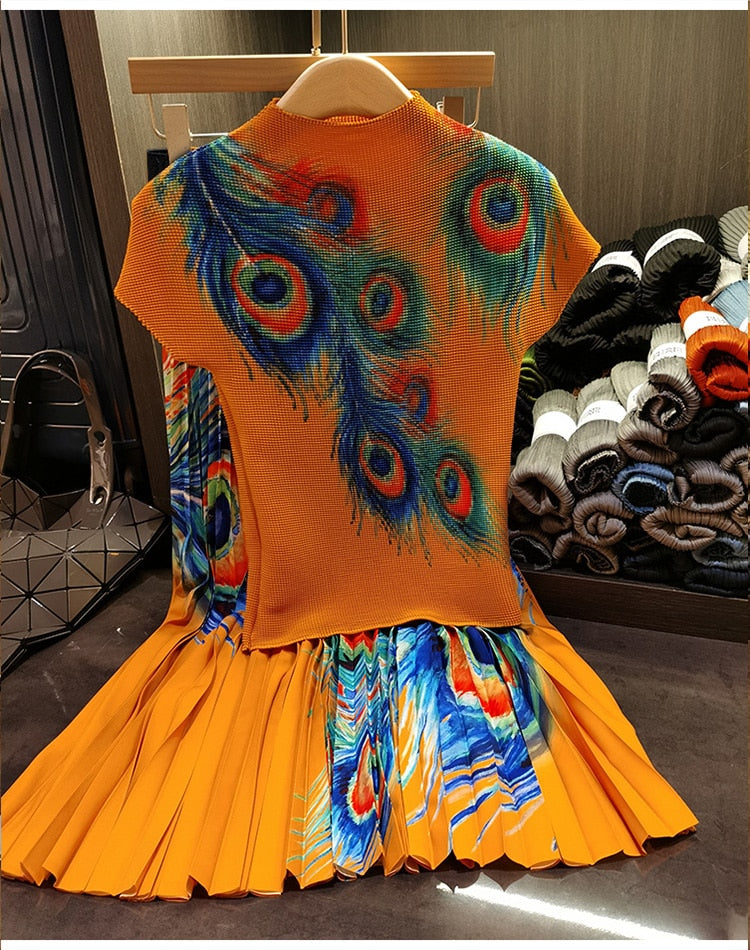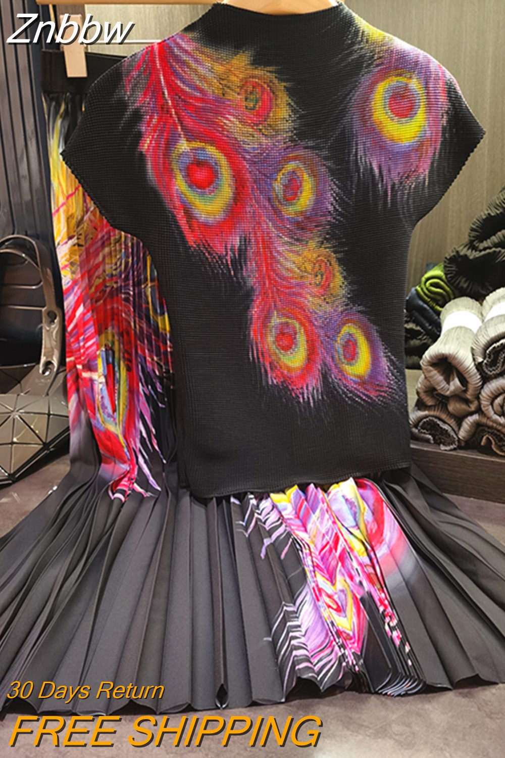 Znbbw Fashion High Stretchy Pleated Pullovers Top & Pleated Midi Skirts Women 2 Pcs Sets Summer Casual Street Dress Set Outfit
