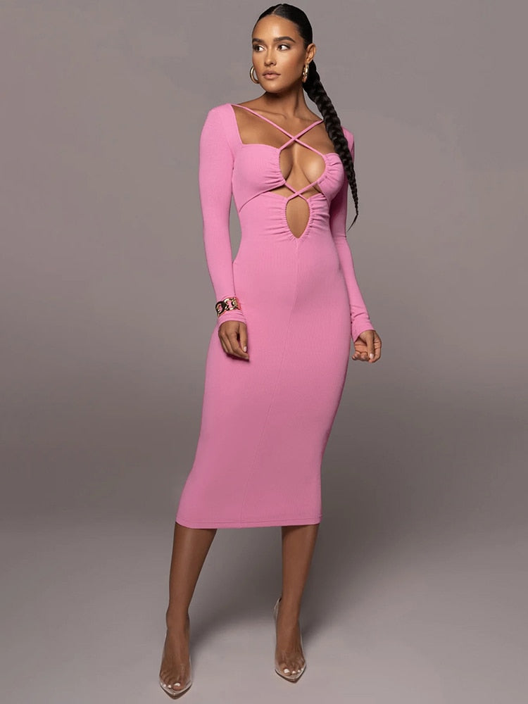 Znbbw Halter Strapless Sexy Bodycon Dresses Women Long Sleeve Backless Skirt 2023 New Fashion Autumn Tight Mid-Caf Dress