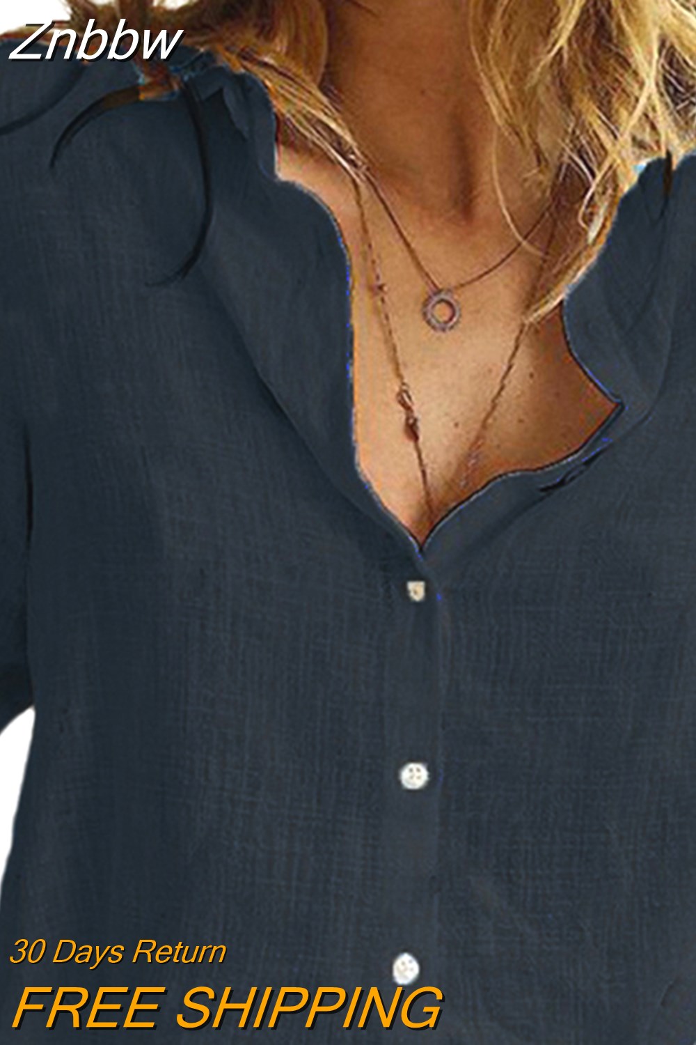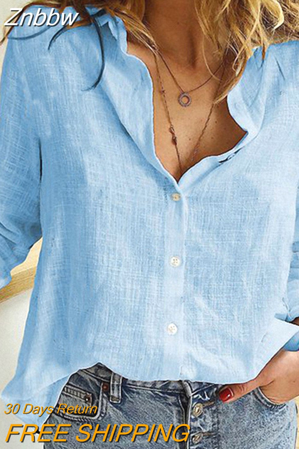 Znbbw Ladies Holiday Blouses Women Long Sleeve Turn-down Collar Solid Color Button Casual Fashion Shirts