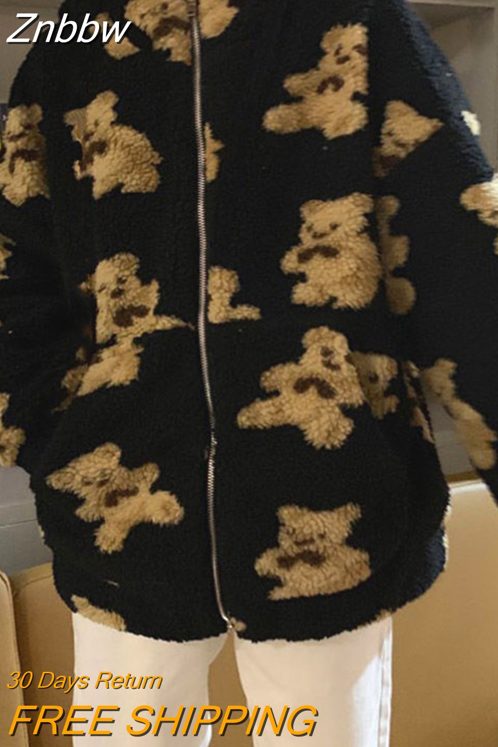 Znbbw New Cartoon Bear Lamb Zip Up Hoodie Women Hooded Coat Casual Oversized Sweatshirt Tops Female Hoodie Jacket Cute Teddy Coat