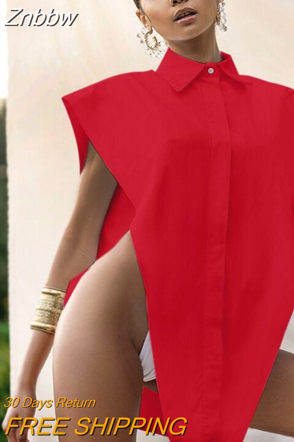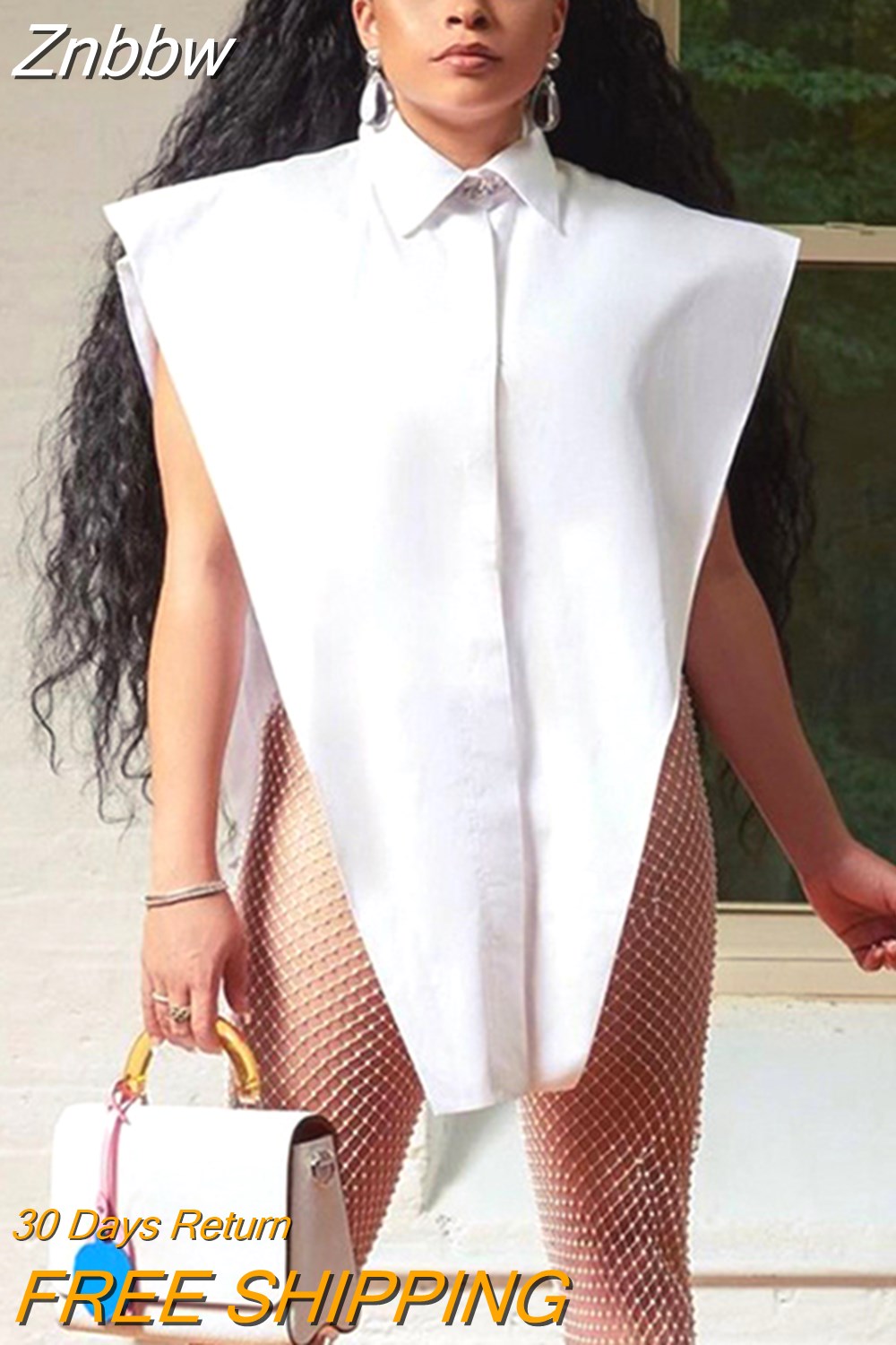 Znbbw Novelty Tops Sexy Cut Out Side Button Up White Shirt Women Fashion Clothing Sleeveless Oversized Shirts