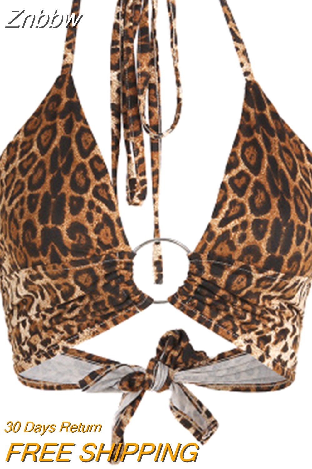 Znbbw Printed Sexy Halter Crop Top Women Camis Backless Bandage Lace Up Sequins Metal Ring Tank Top 2023 Party Club Bustier