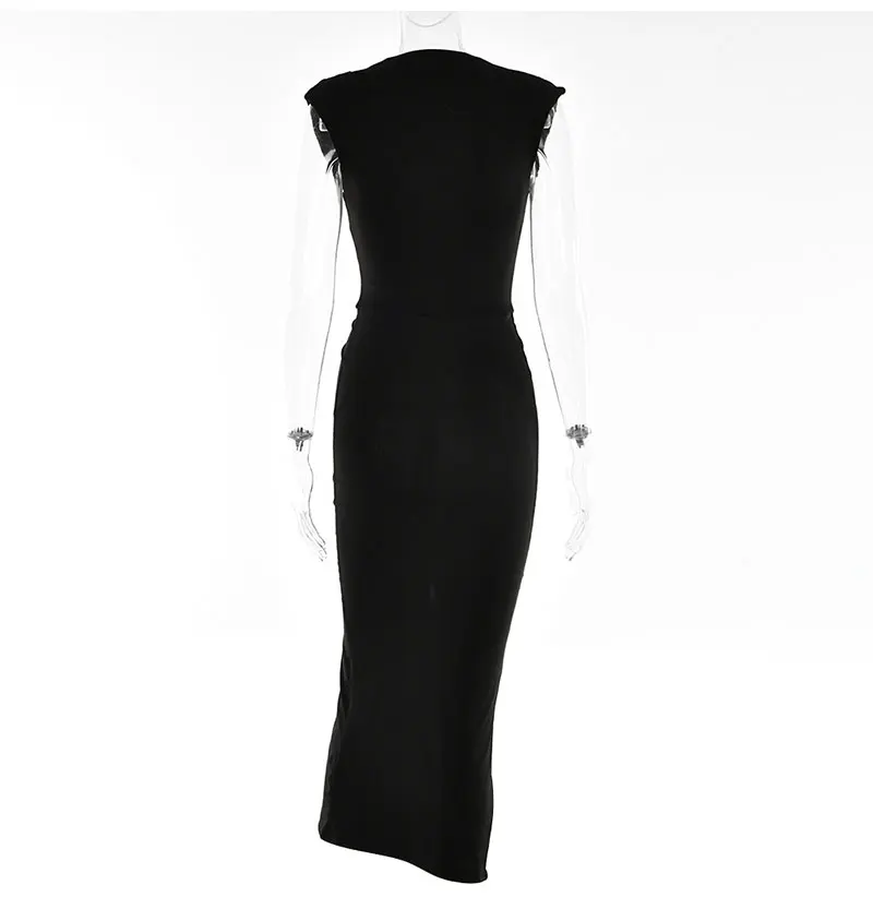 Znbbw Sexy Pleated Long Dress With Shoulder Pad Split Women High Waist Elegant 2023 Summer Club Party Bodycon Maxi Dress