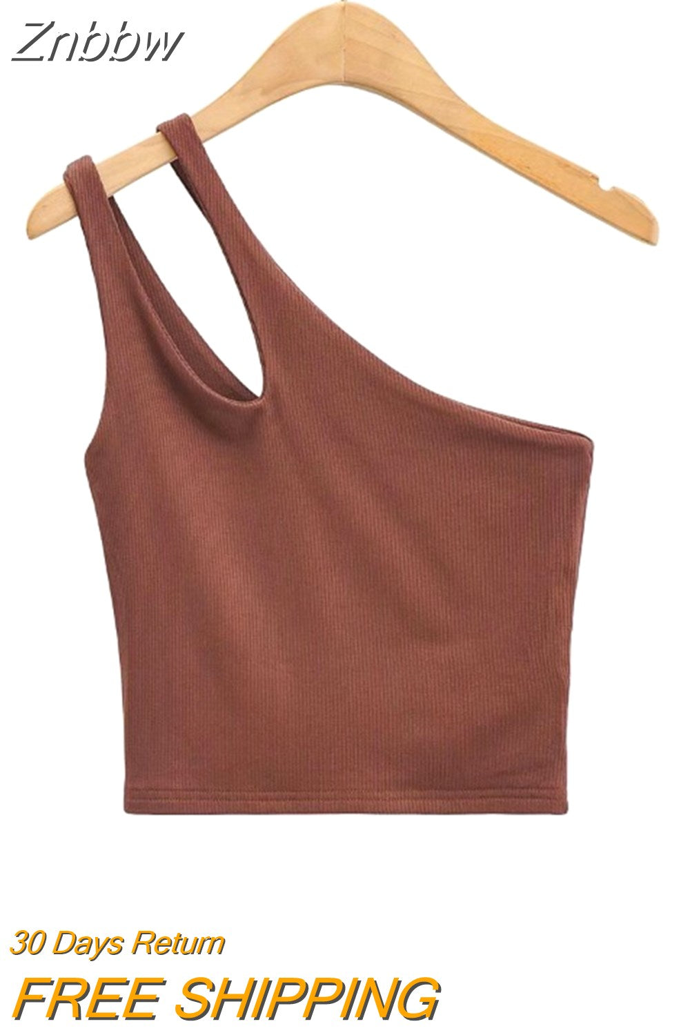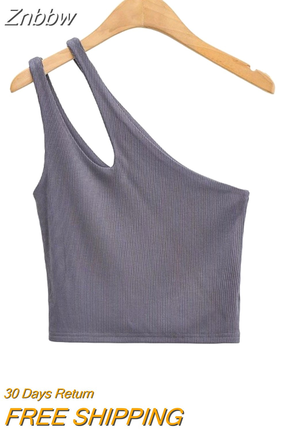 Znbbw Sexy Women's Crop Top Solid Stretch Fit Knit Sleeveless One Shoulder Hollow Out Basic Backless Tank Top