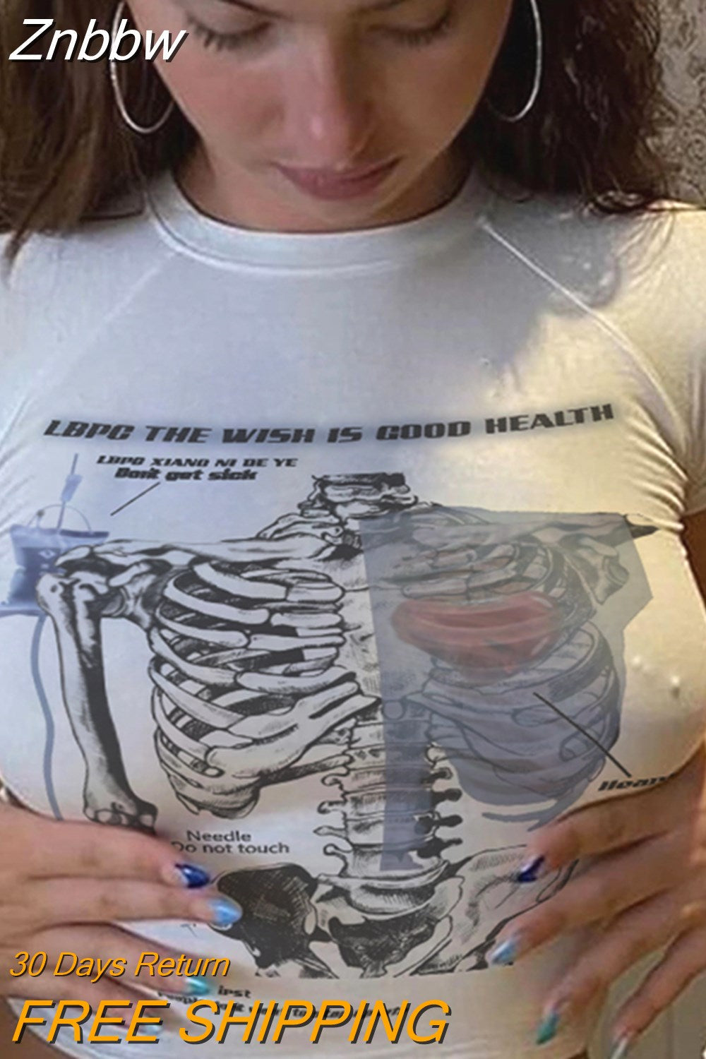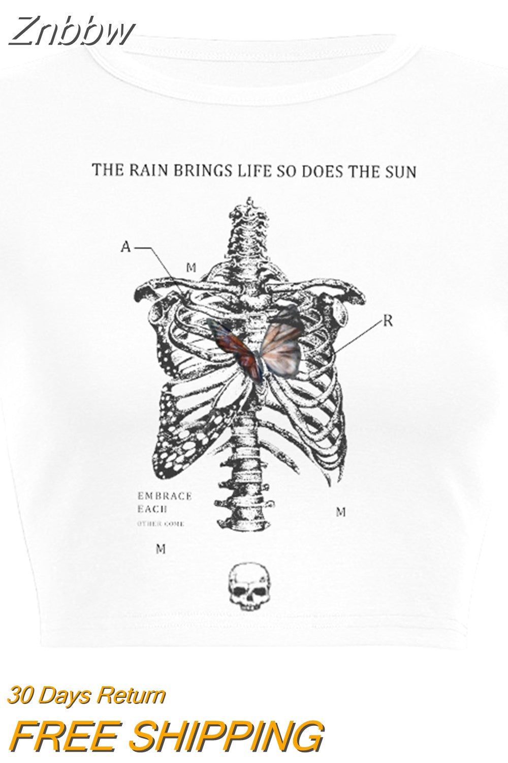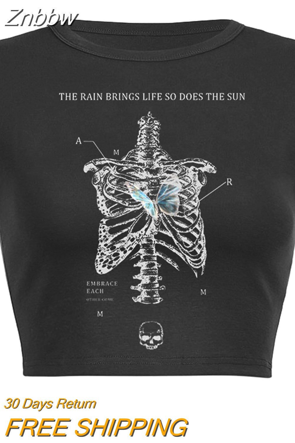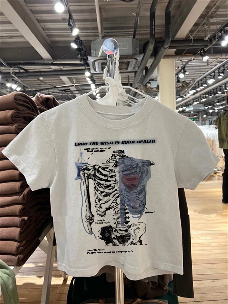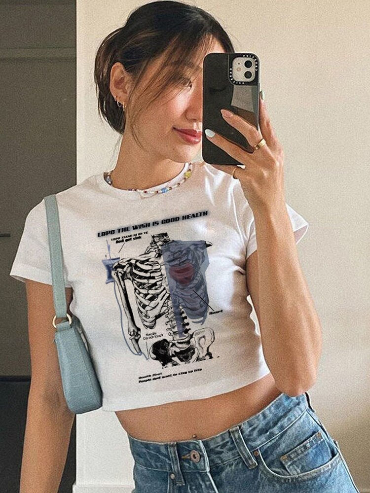 Znbbw skull baby tee top summer gothic white aesthetic cropped o-neck top 200s punk hip hop streetwear Vintage crop top women Cute