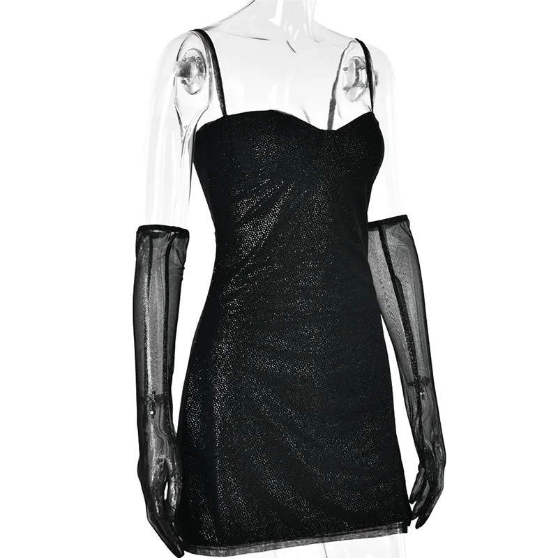 Znbbw Sparkle Sexy Mini Dress Women New Spaghetti Strap With Sleeve Backless Sleeveless Glitter Club Party Sexy Dress Vestido