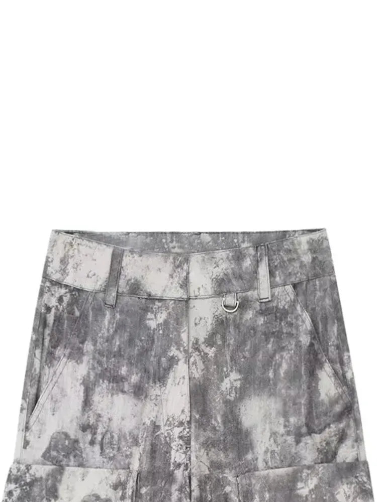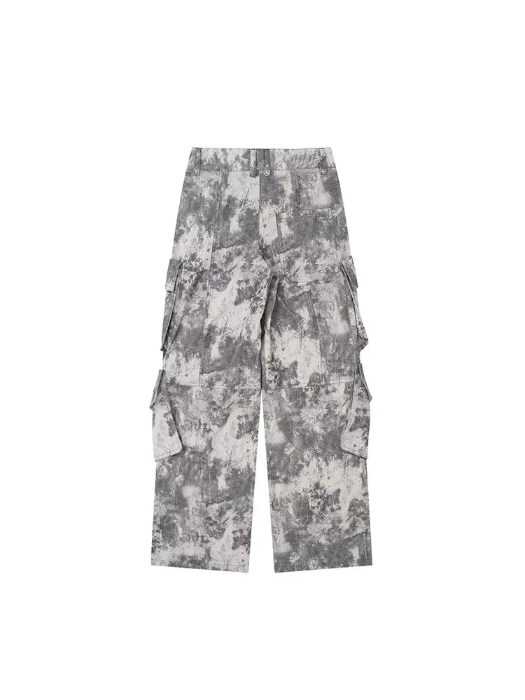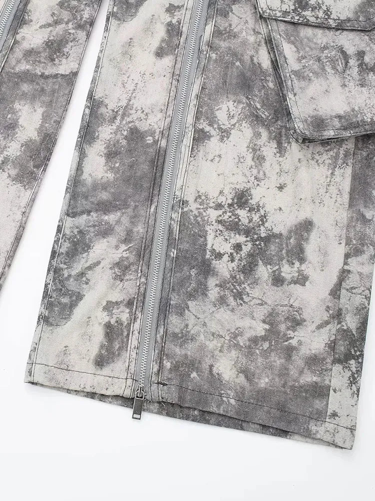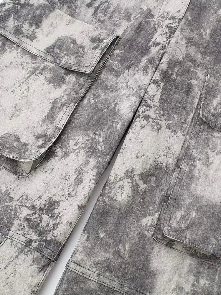 Znbbw TRAF Autumn Winter Pant Print Pockets Cargo Pant For Women High Waist Spliced Button Streetwear Loose Pants Female