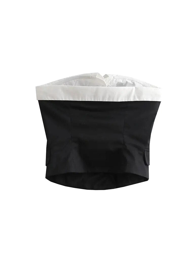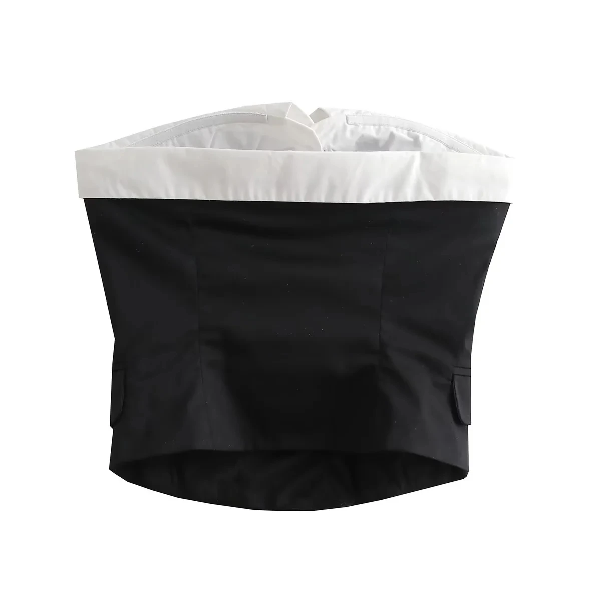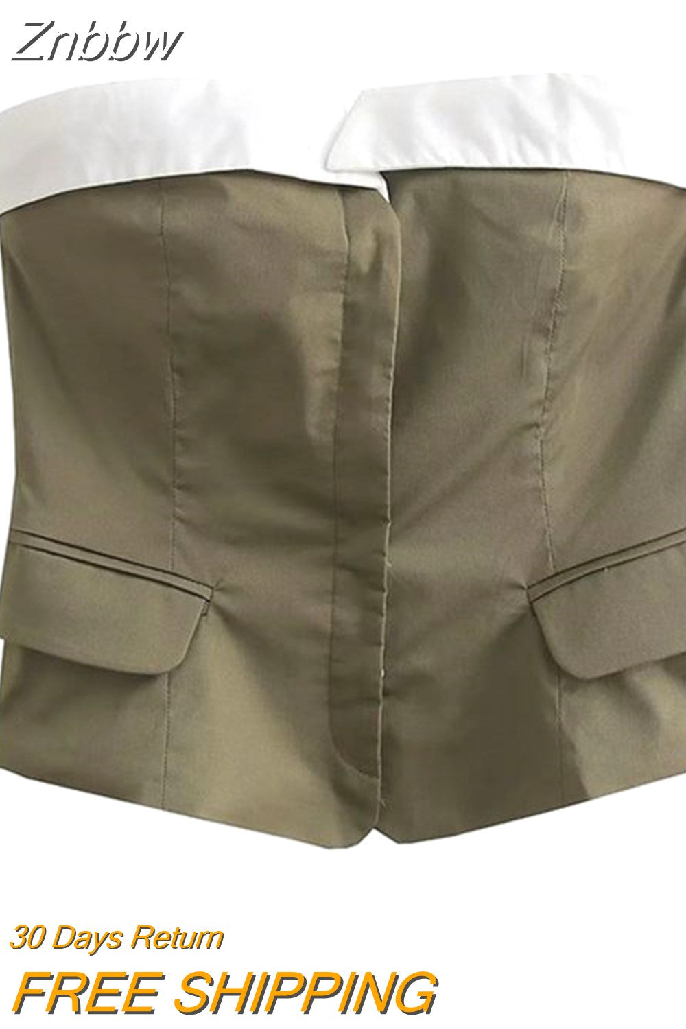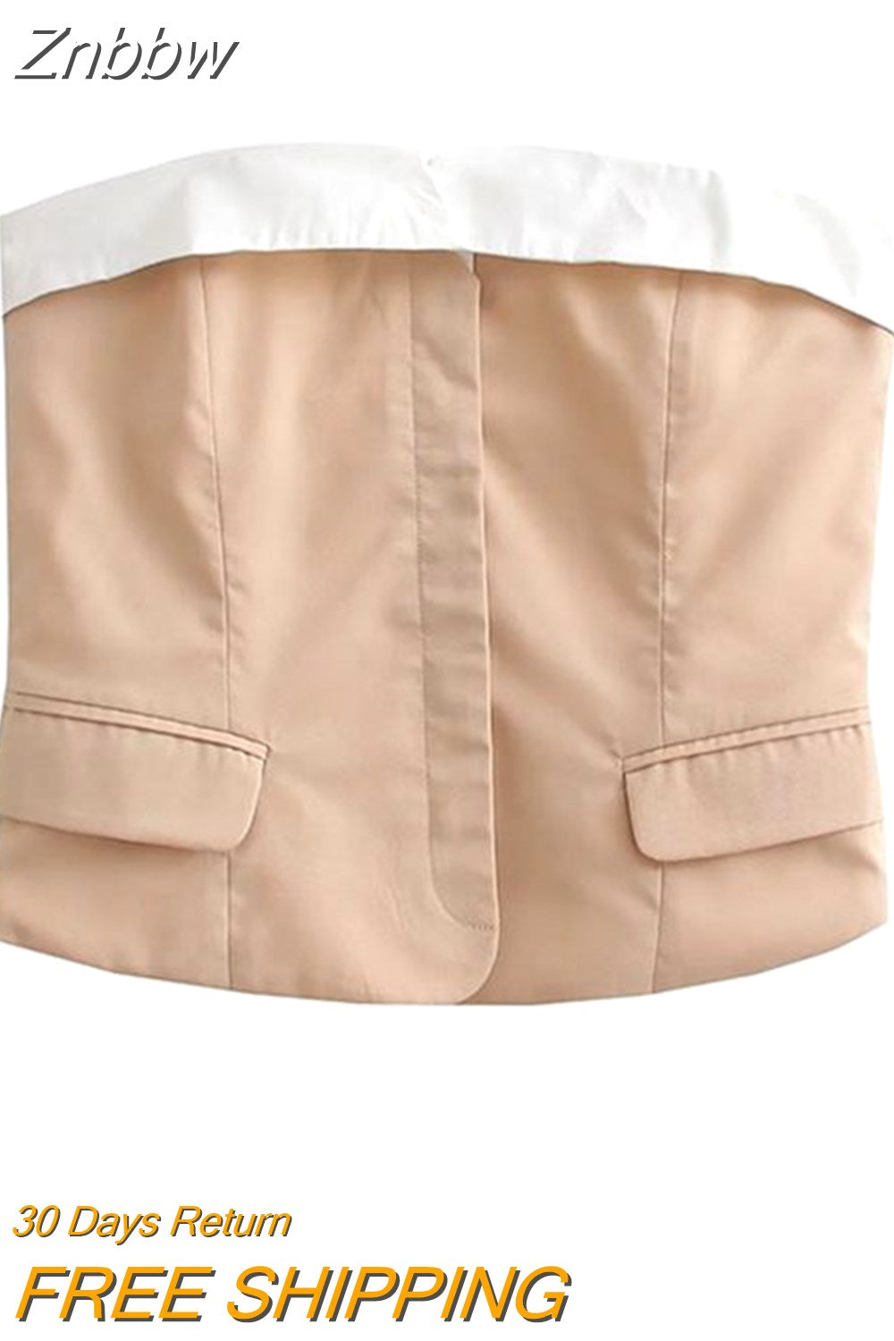 Znbbw TRAF Summer Camis Women Strapless Top Sleeveless Backless Patchwork Slim Bustier Female Crop Tanks Y2K