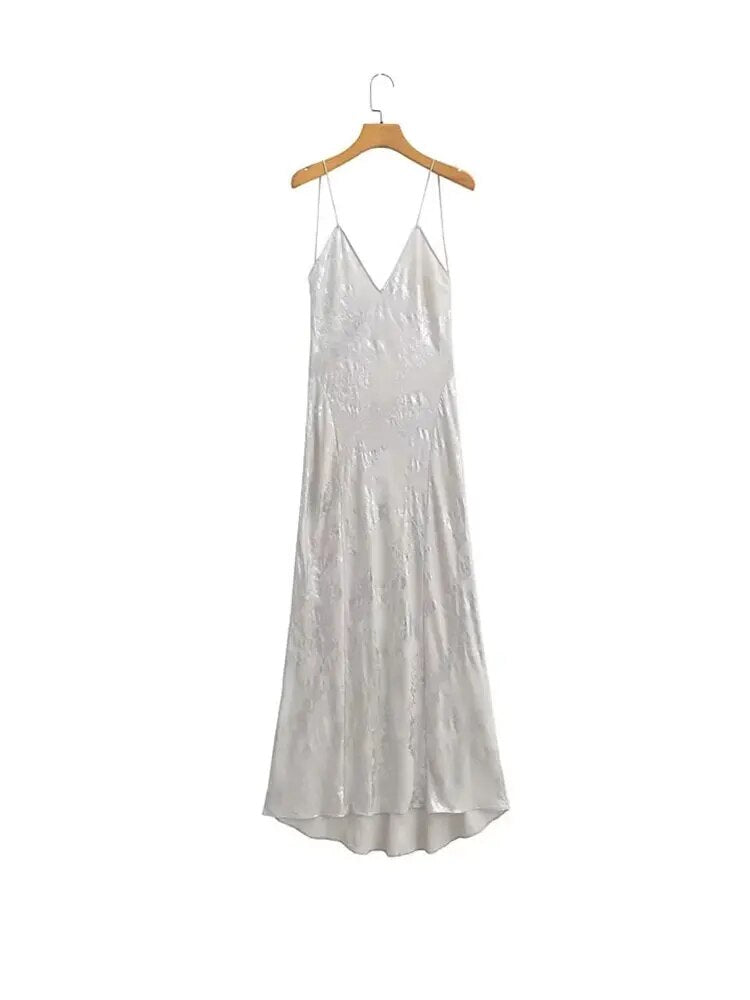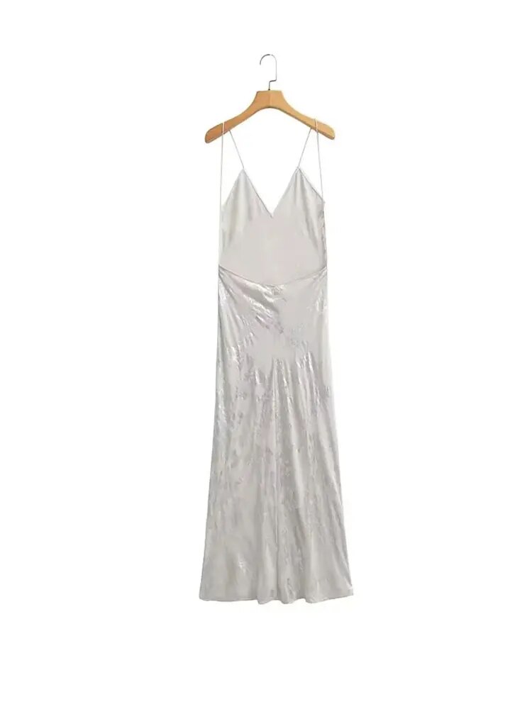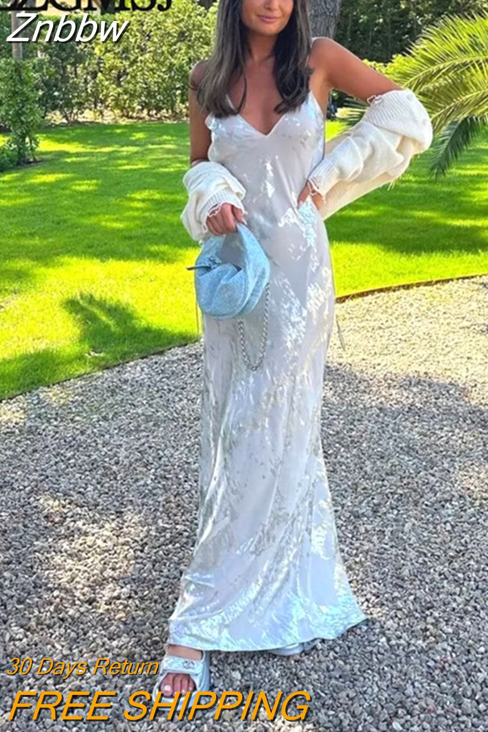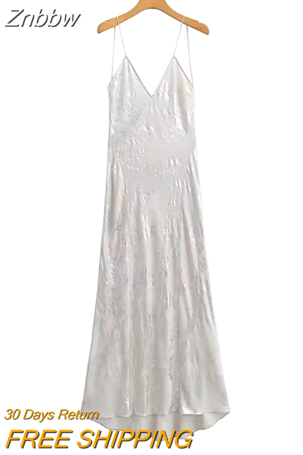 Znbbw TRAF Summer V-neck Satin Spaghetti Strap Dress Women Backless Sexy Sleeveless Bodycon Party Dress Female Dresses