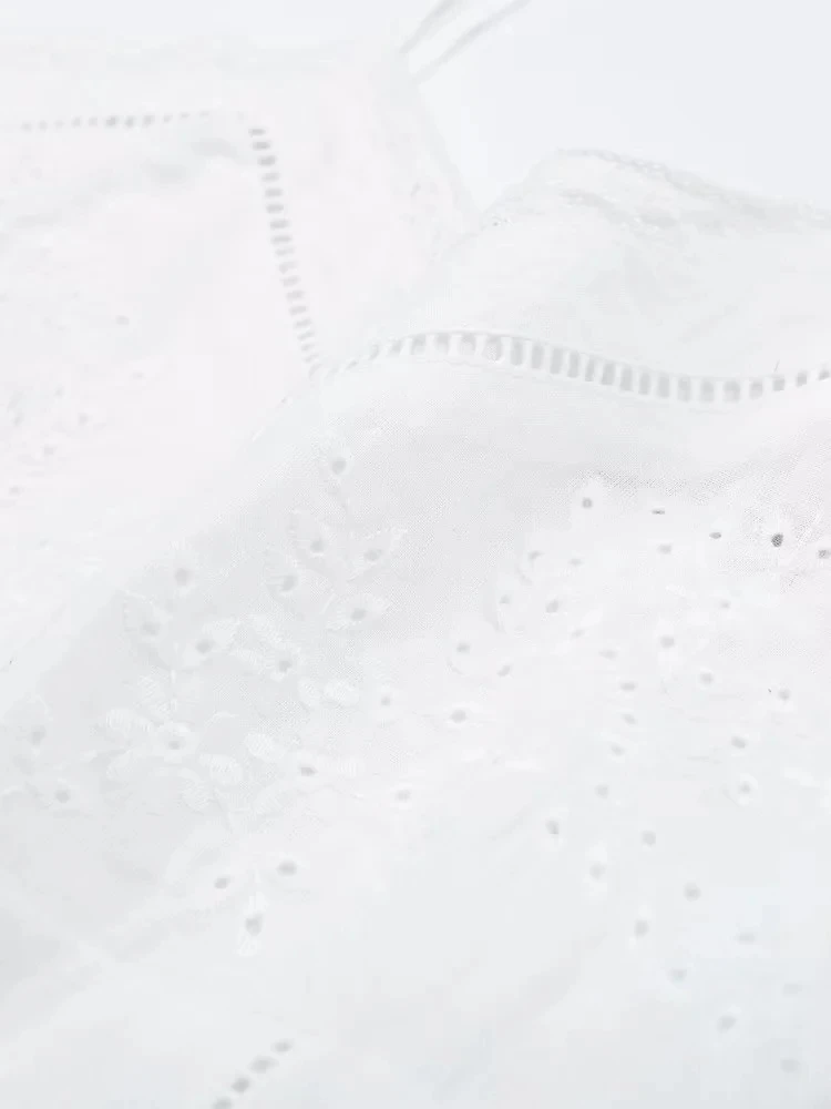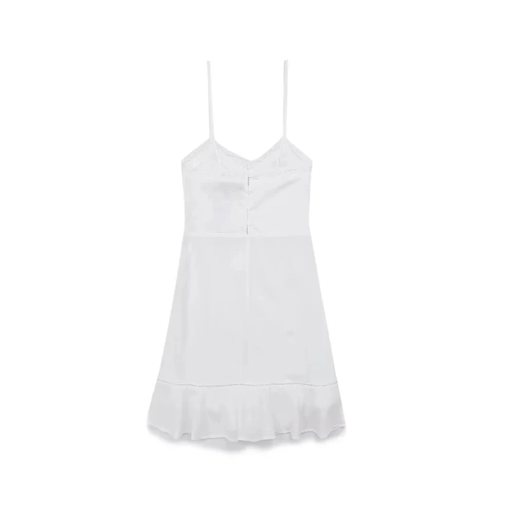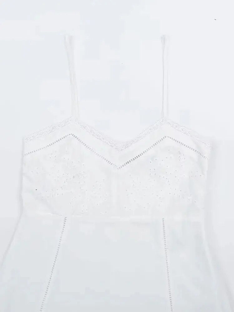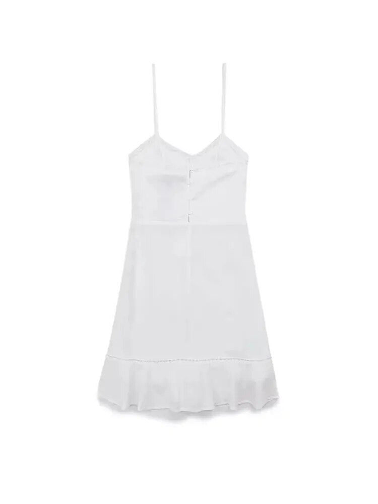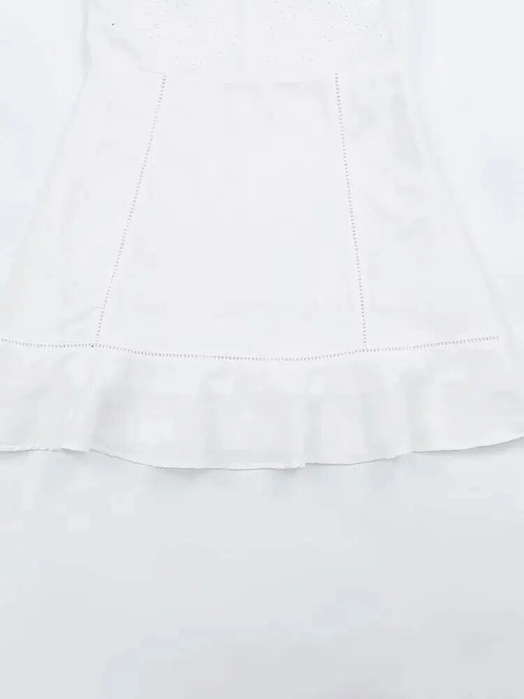 Znbbw TRAF Women 2023 Casual Pure Loose Fit Fashion Embroidery Hollow out Mini Vintage Strap Dress Vestidos Mujer