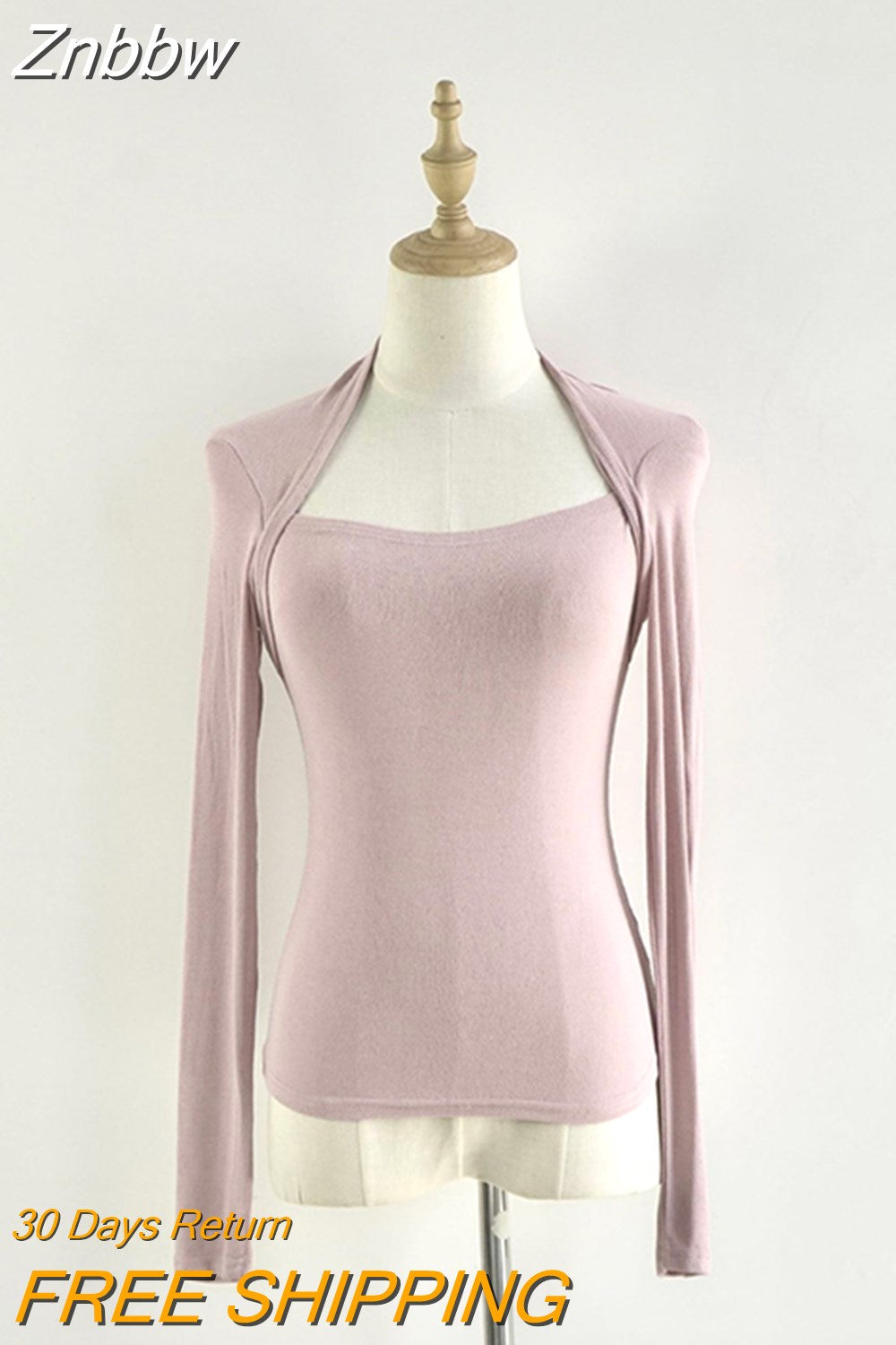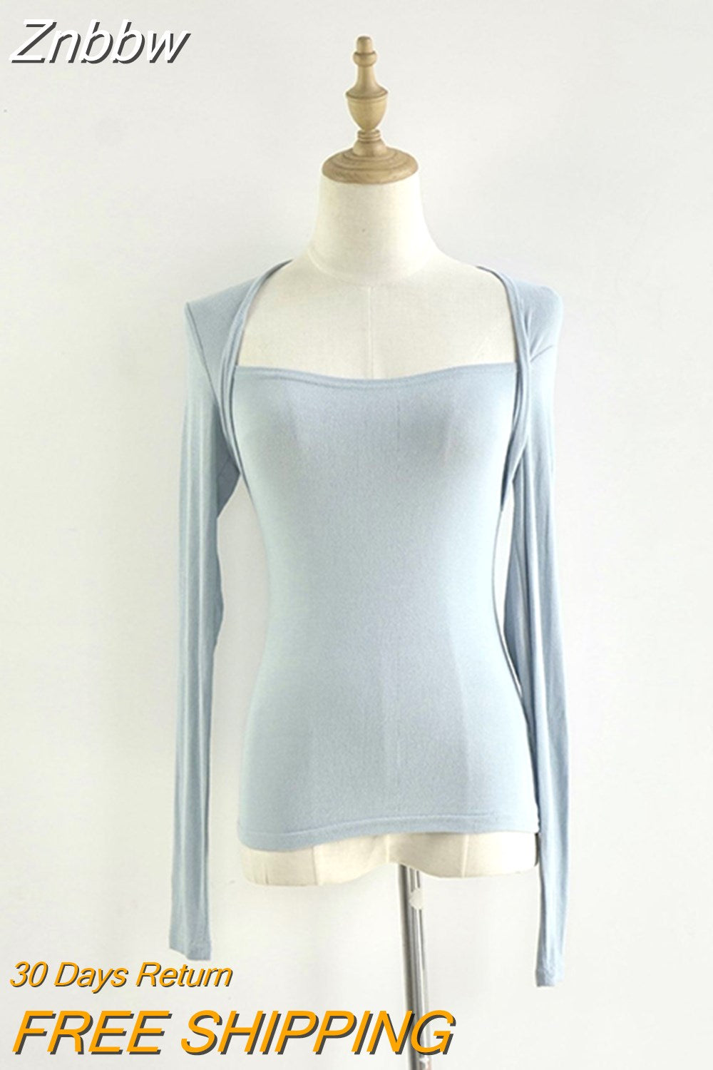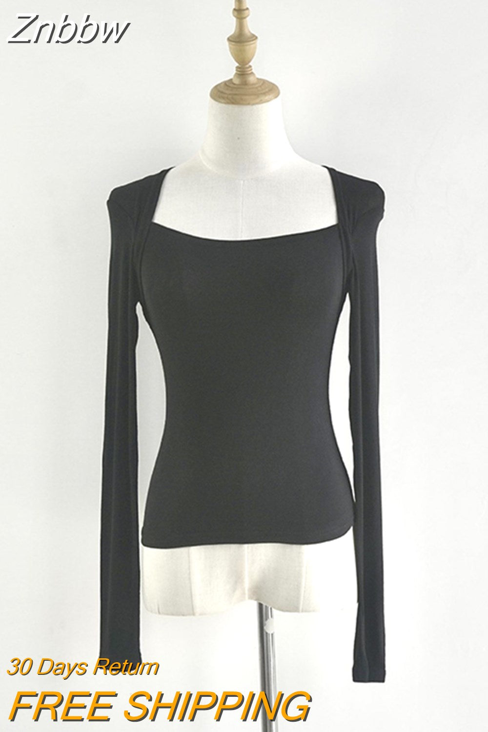 Znbbw Two Top Winter Base Square Collar Sexy Big Breasts Elegant Solid Color Slim Sexy Long Sleeve T-shirt Tees Tops Korean