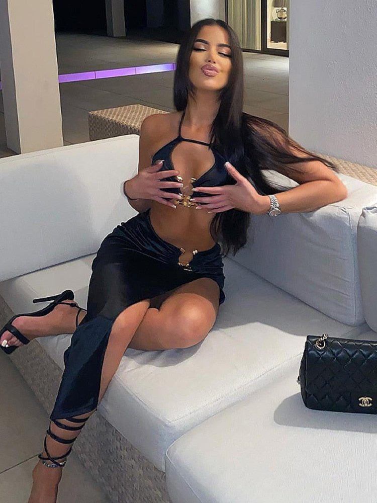 Znbbw Velvet Sexy Strapless Crop Tube Top High Waist Slit Maxi Dress 2 Pcs Suits 2023 Fall Women Fashion Streetwear Vestido