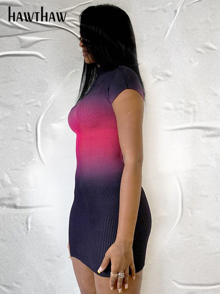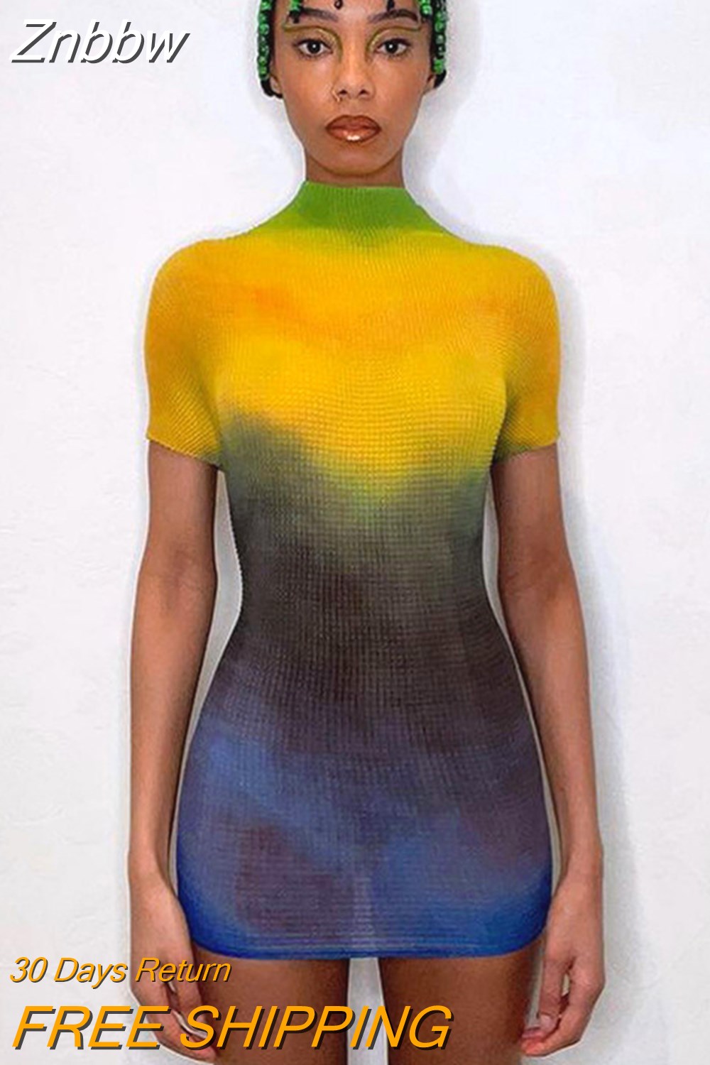 Znbbw Women Fashion Short Sleeve Bodycon Streetwear Gradien Mini Dress 2023 Summer Fall Clothing Wholesale Items For Business