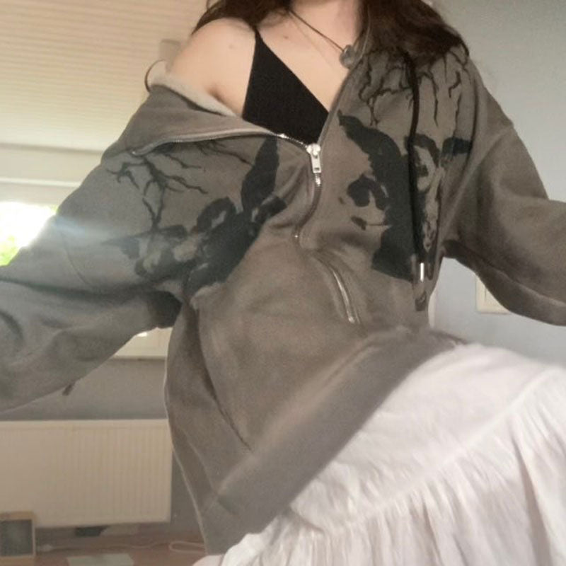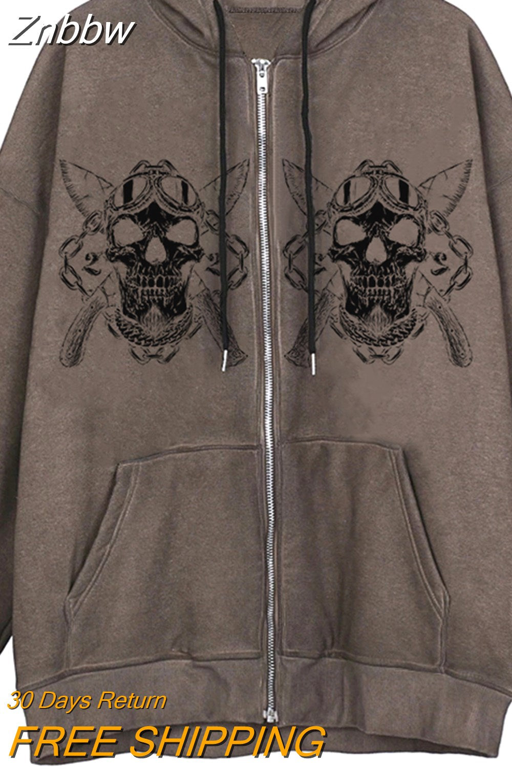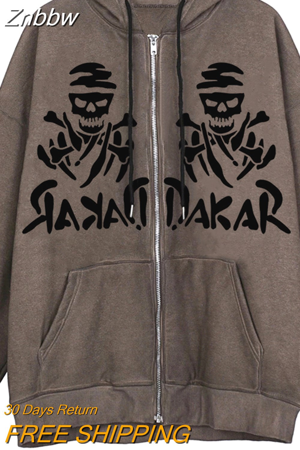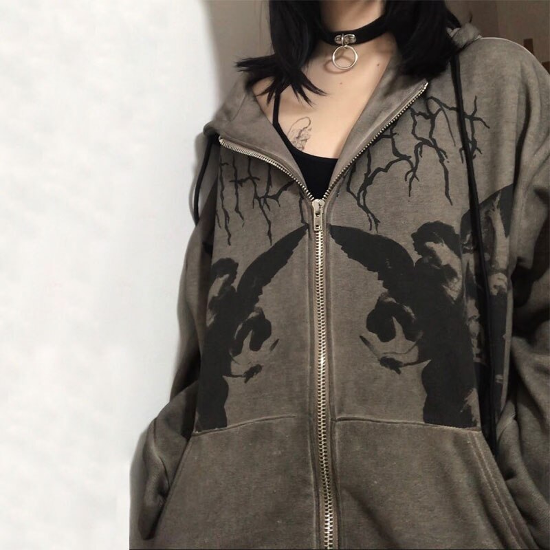 Znbbw Women Hip Hop Streetwear Hoodies Goth Angel Dark Print Zipper Jacket Coat Harajuku Y2K Hooded Top Clothes Men Women Punk Outwear