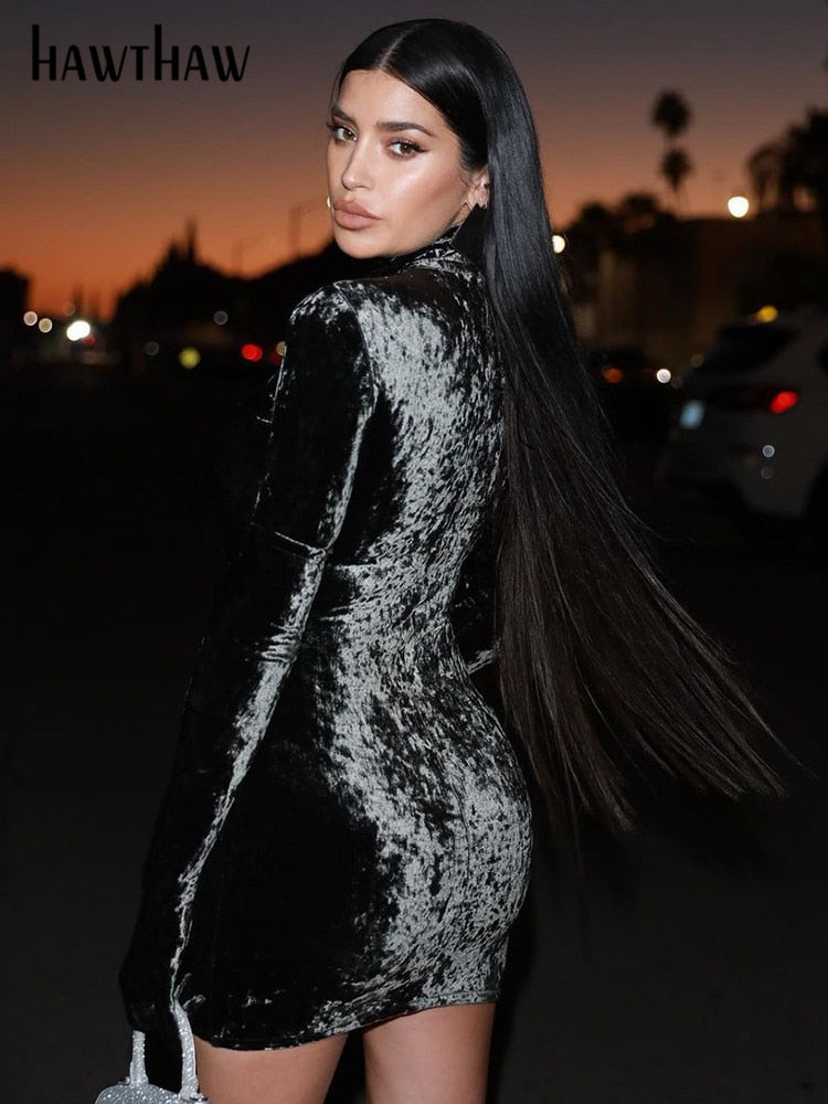 Znbbw Women Long Sleeve Bodycon Streetwear Party Club Velvet Black Mini Dress 2023 Fall Clothing Wholesale Items For Business