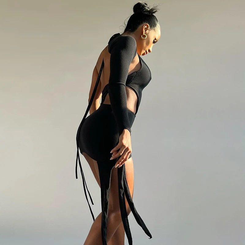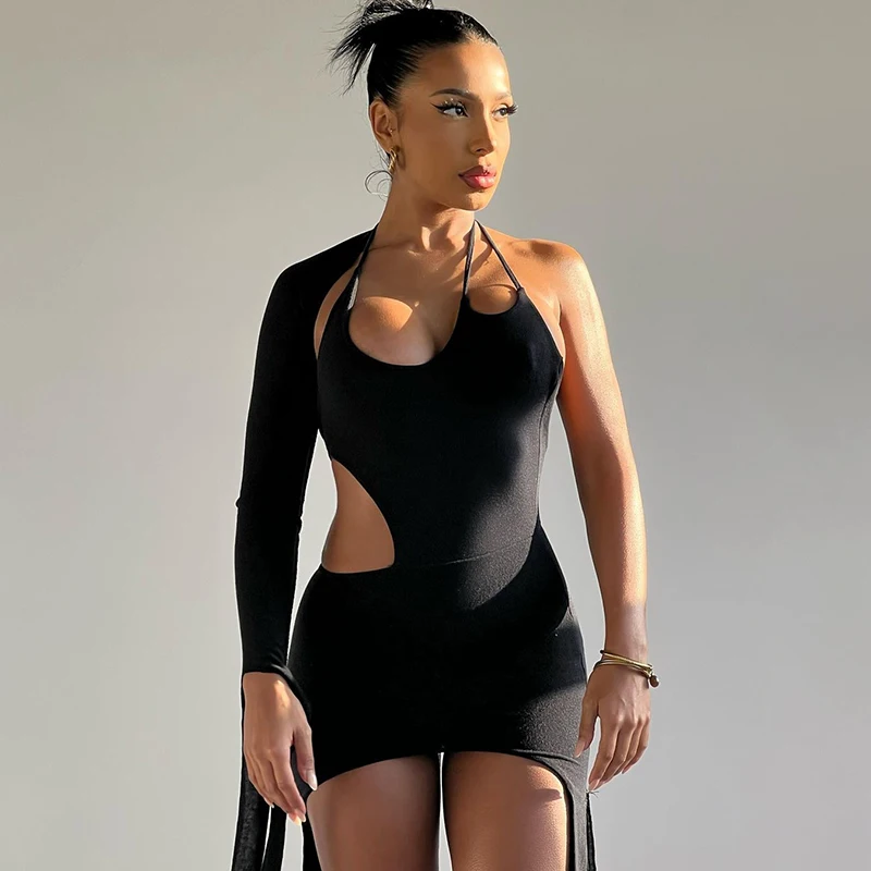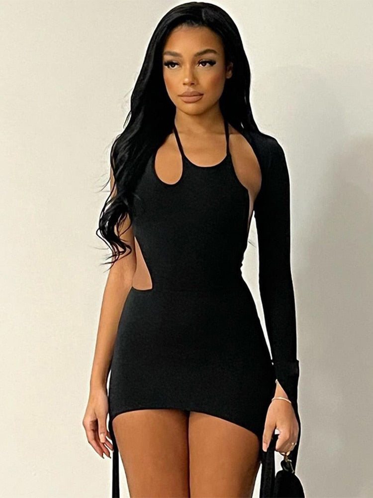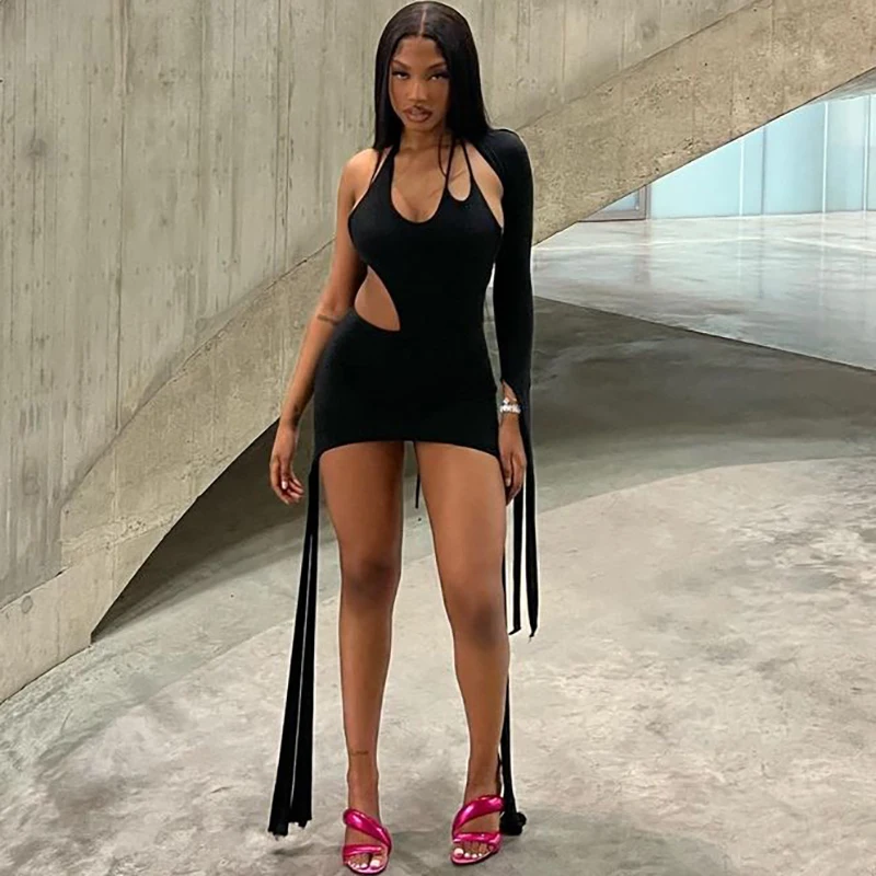 Znbbw Women Sexy Halter Hollow Out Party Club Bodycon Black Mini Dress 2023 Summer Clothes Wholesale Items For Business