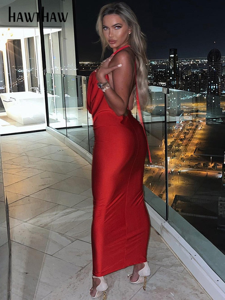 Znbbw Women Sexy Halter V Neck Party Club Evening Bodycon Backless Long Dress Streetwear 2023 Summer Clothes Dropshipping