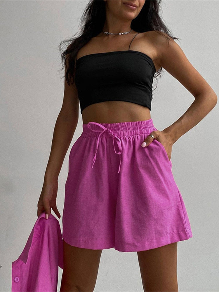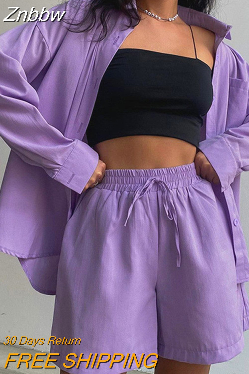 Znbbw Women Tracksuits Shirt Shorts Two Piece Sets Long Sleeve Blouse And Mini Shorts Suits Summer Casual Fashion Loose Female Outfits