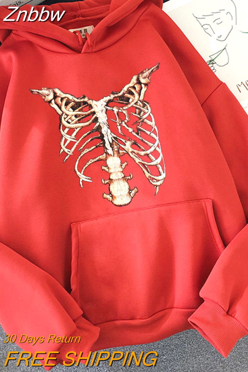 Znbbw Y2K Harajuku Anime Gothic Hoodies Korean Style Loose Skull Print Goth Grunge Long-sleeved Hooded Coat Solid Color Retro