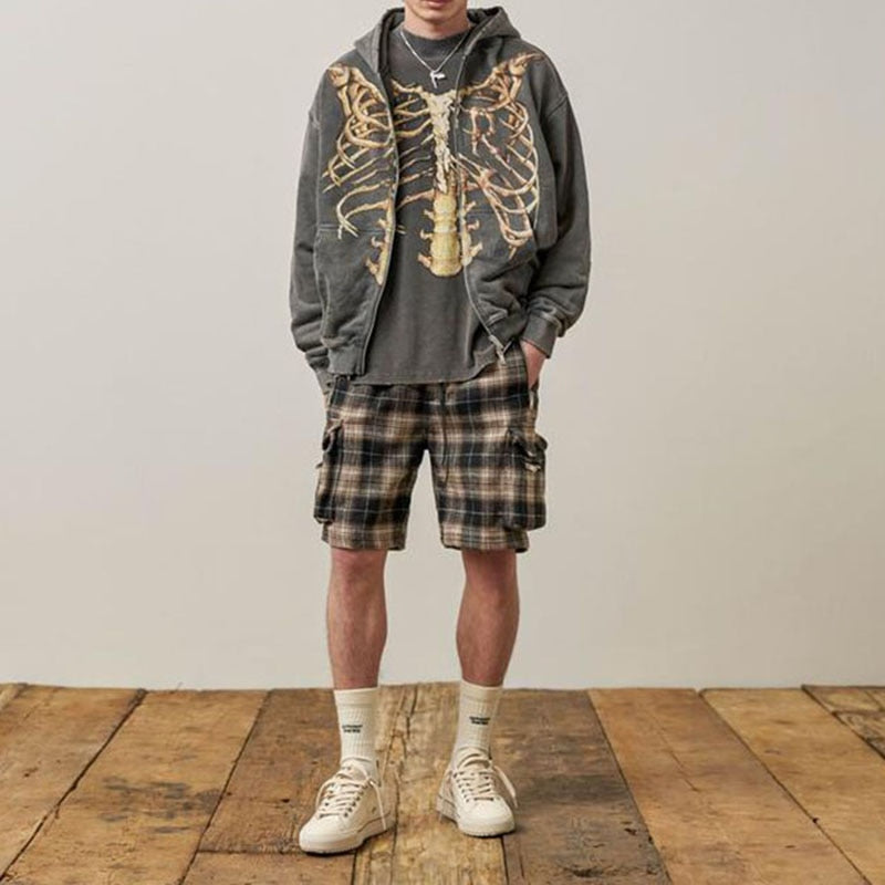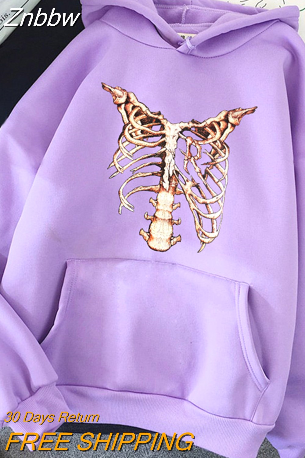 Znbbw Y2K Harajuku Anime Gothic Hoodies Korean Style Loose Skull Print Goth Grunge Long-sleeved Hooded Coat Solid Color Retro