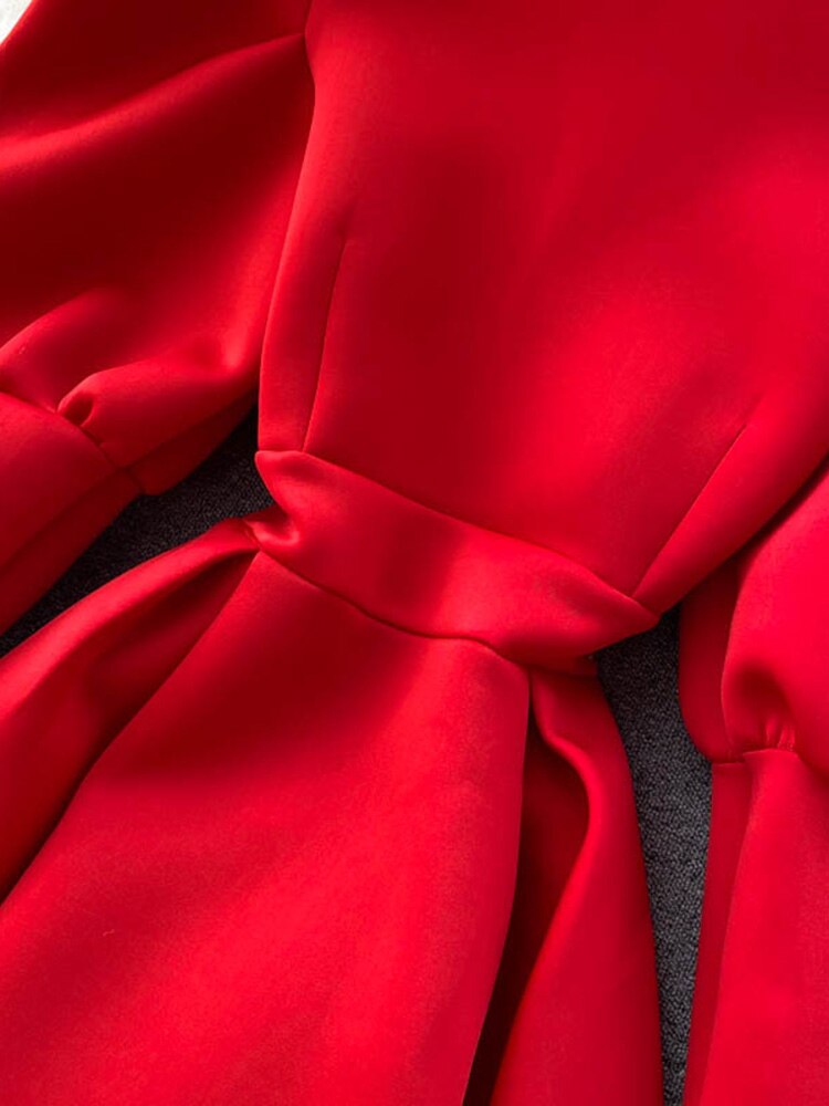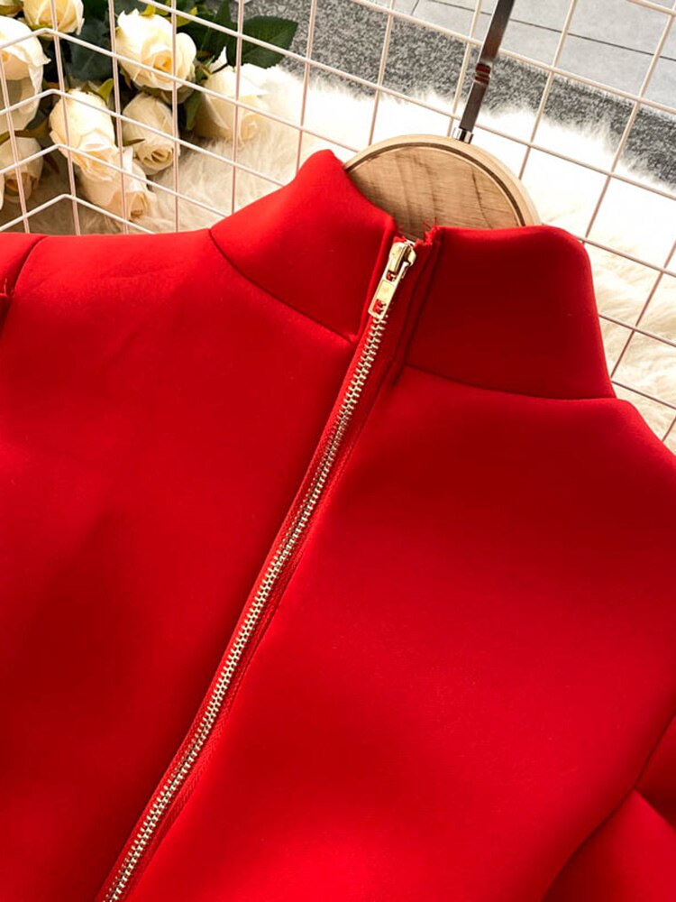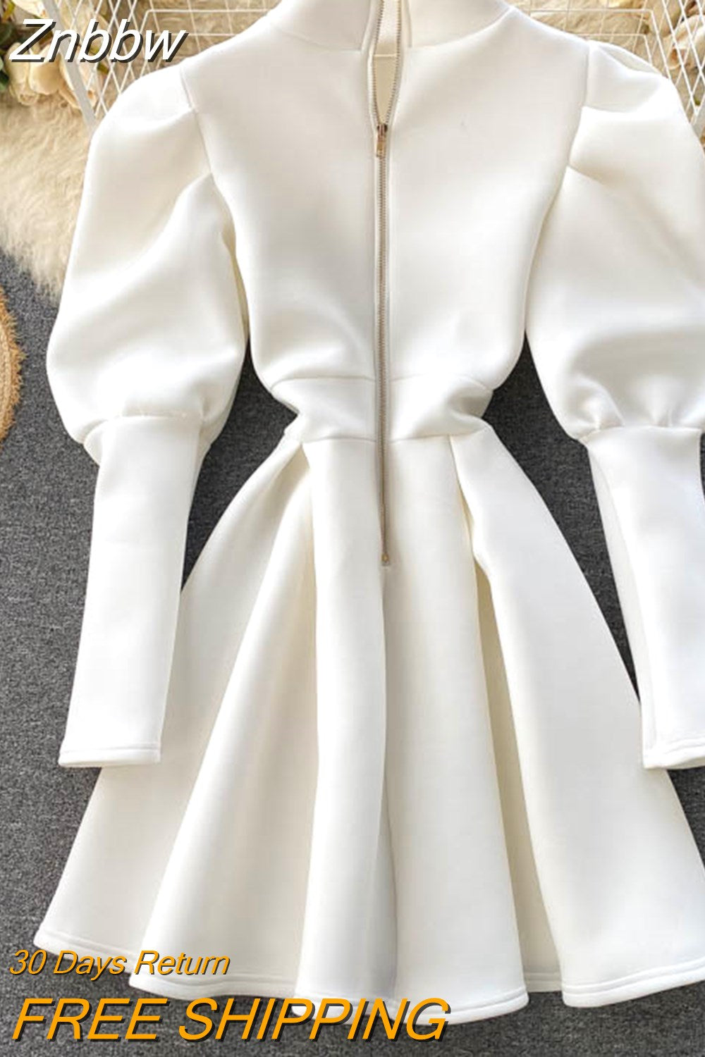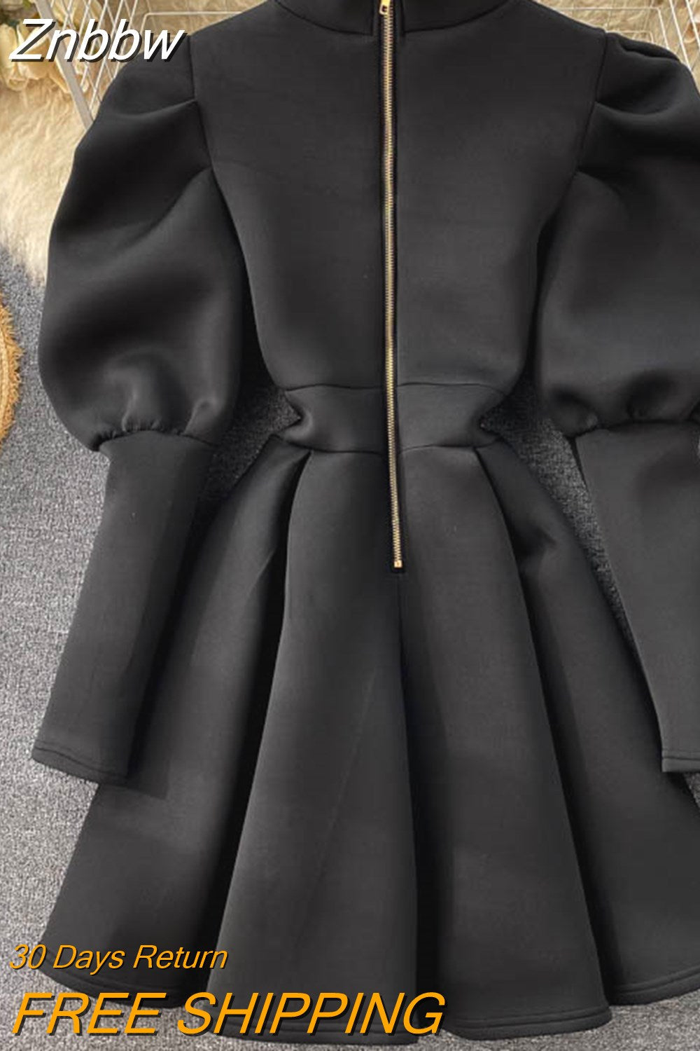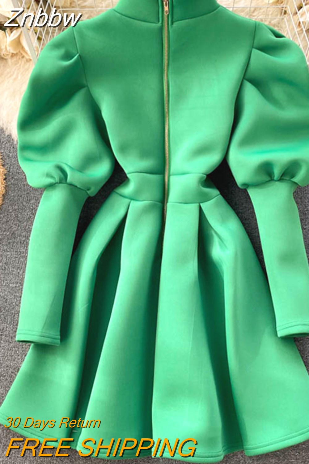 Znbbw Autumn Vestidos Women's Bubble Sleeves Front and Back Two Wear Temperament Stand-up Collar Zipper Slim Midi Dress GK447