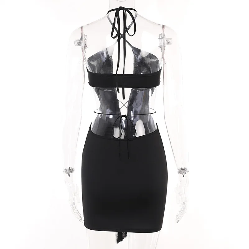 Znbbw Halter Cut Out Backless Bodycon Mini Dress Women Ruffles Ribbon Party Vestidos 2023 Summer Night Club Prom Y2K Clothes
