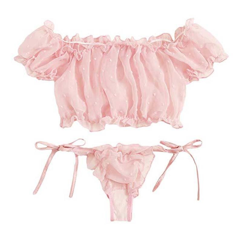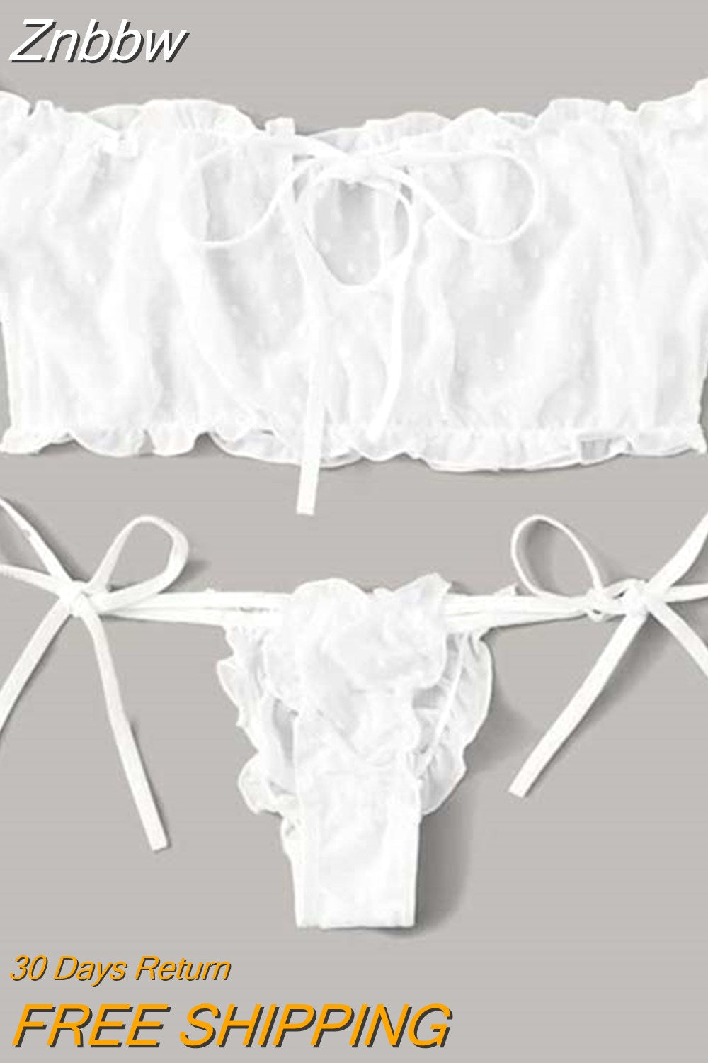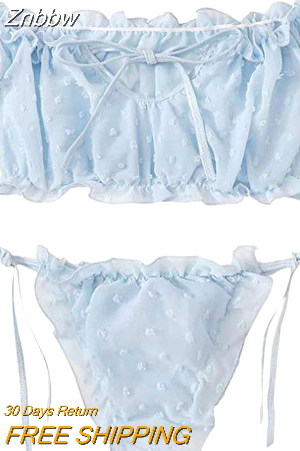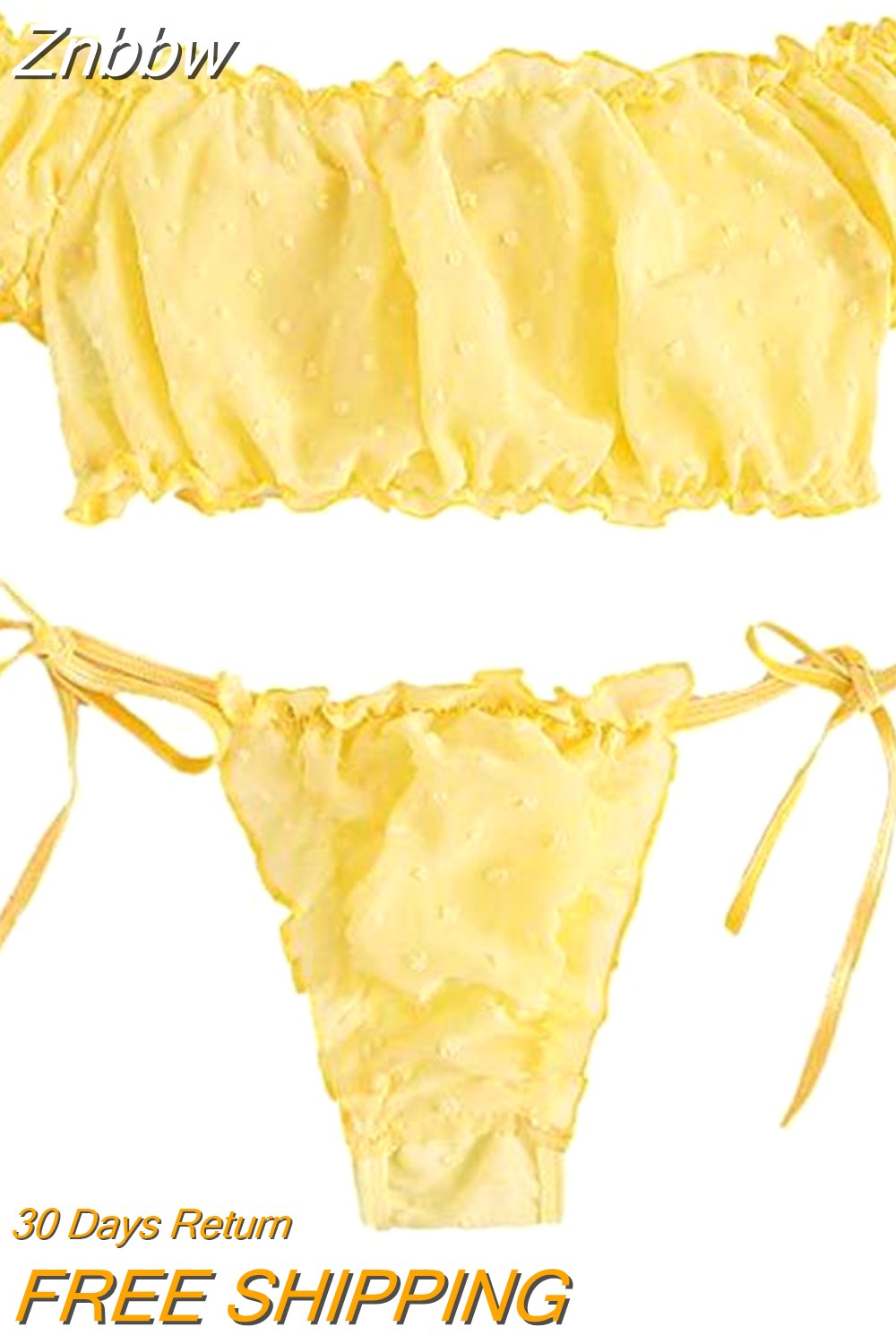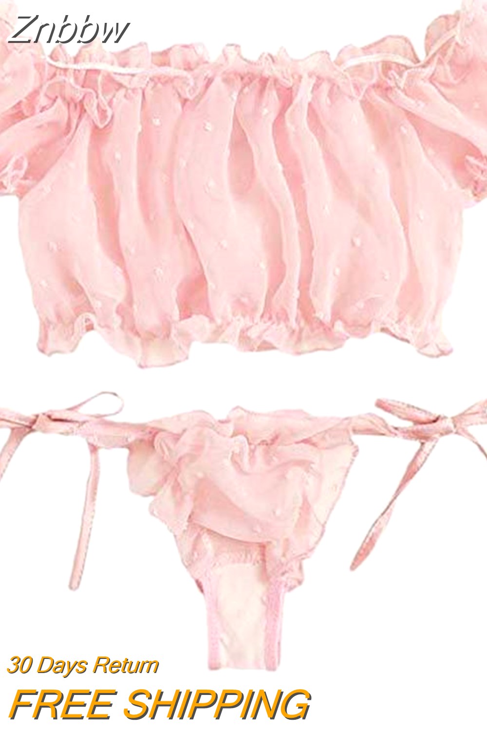 Znbbw Off Shoulder Lace Up Bikinis Women Sweet Casual Short Sleeve Suits Swimsuits Beachwear Bathing Suits