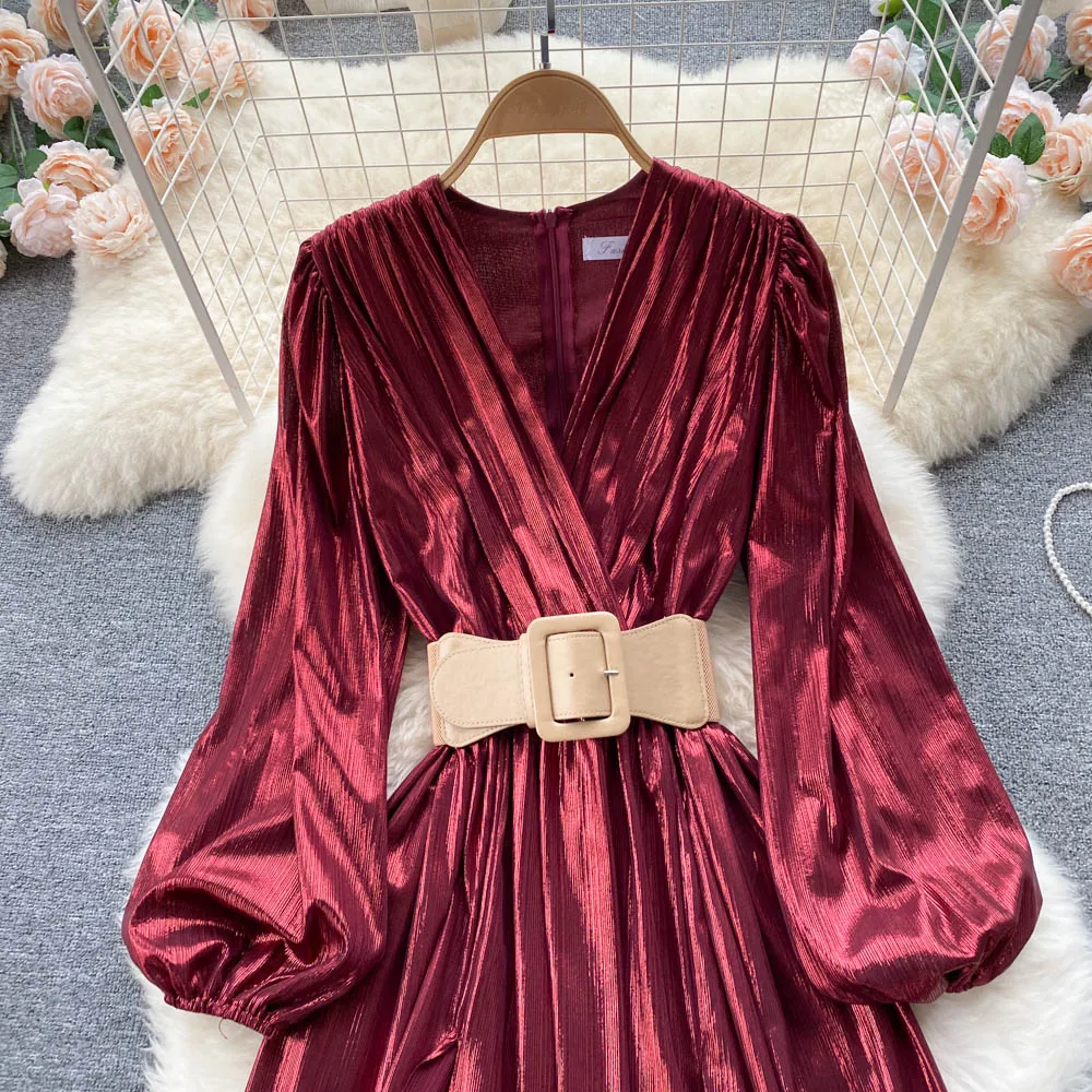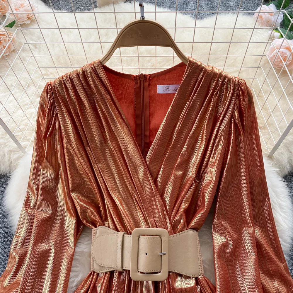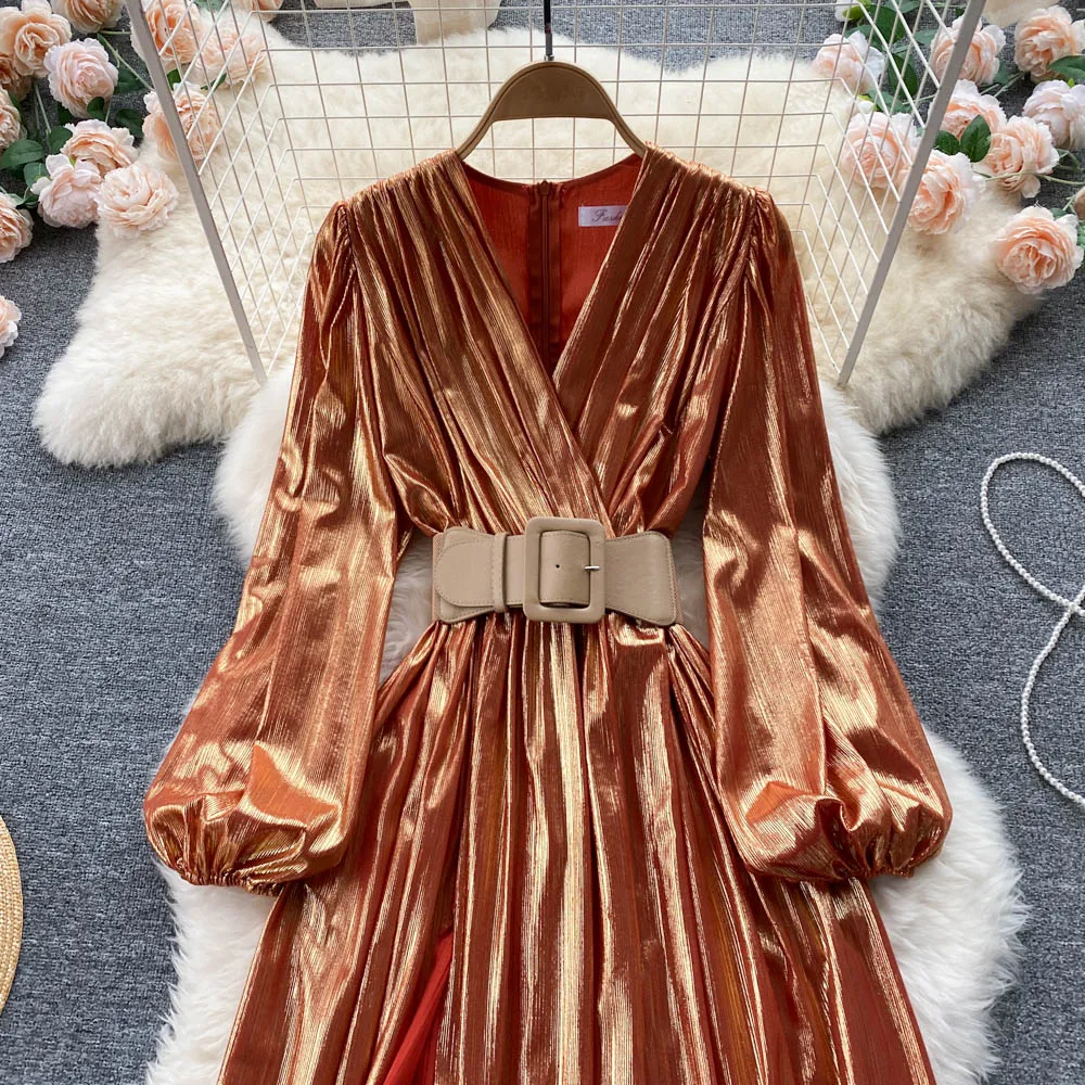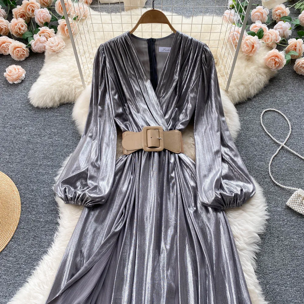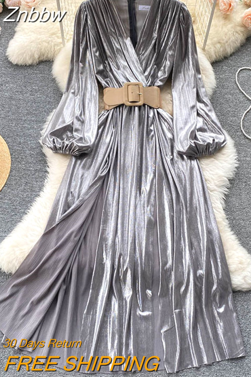Znbbw Spring Autumn Women's Long Sleeve Dress V-neck Fashion Sexy Waist Long Dress Women Dresses for Women Party D0725