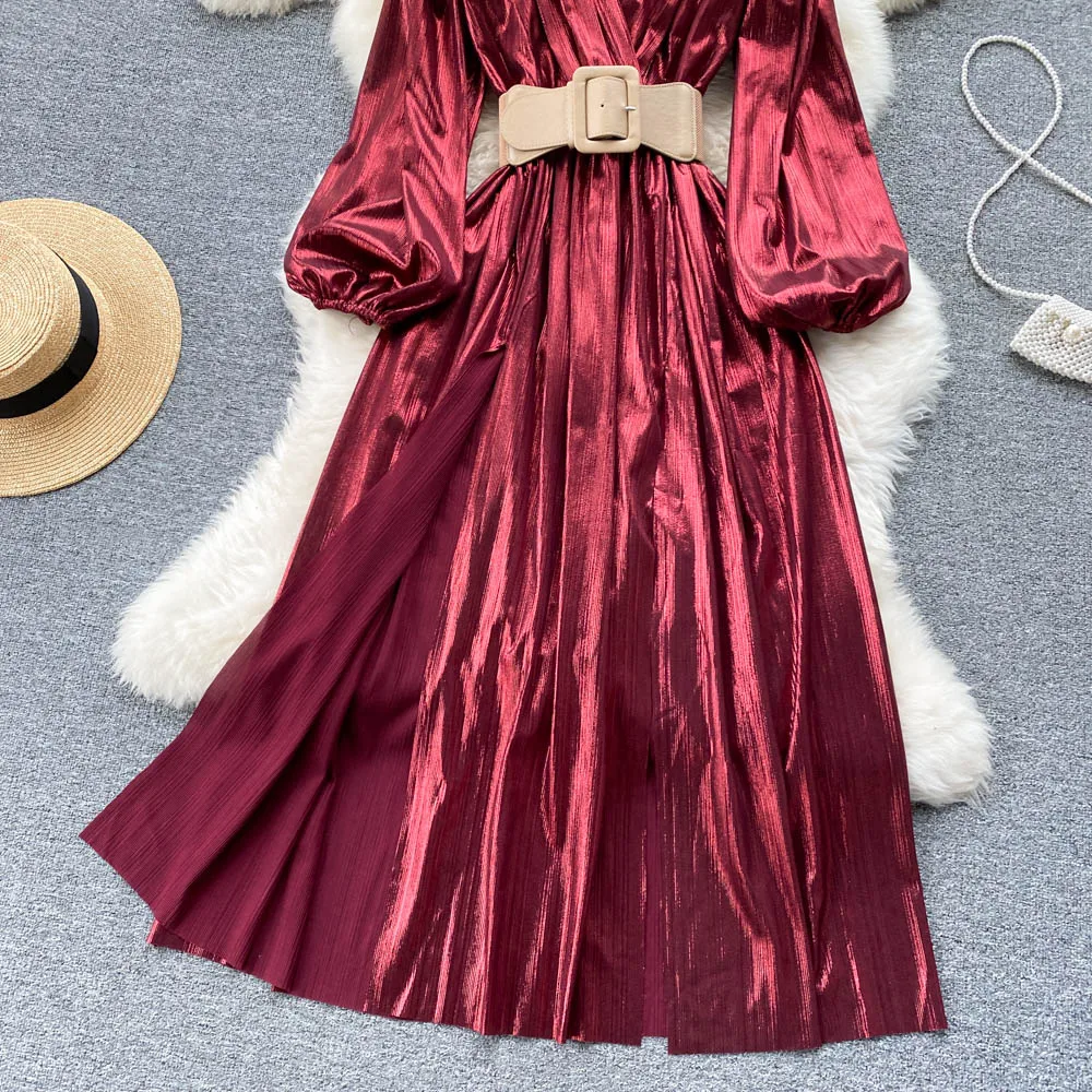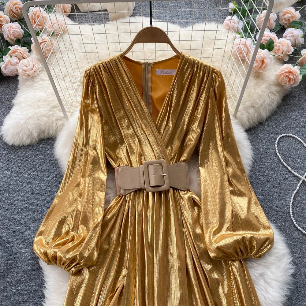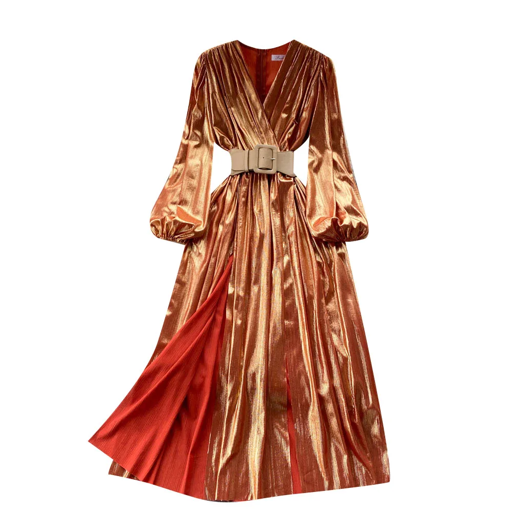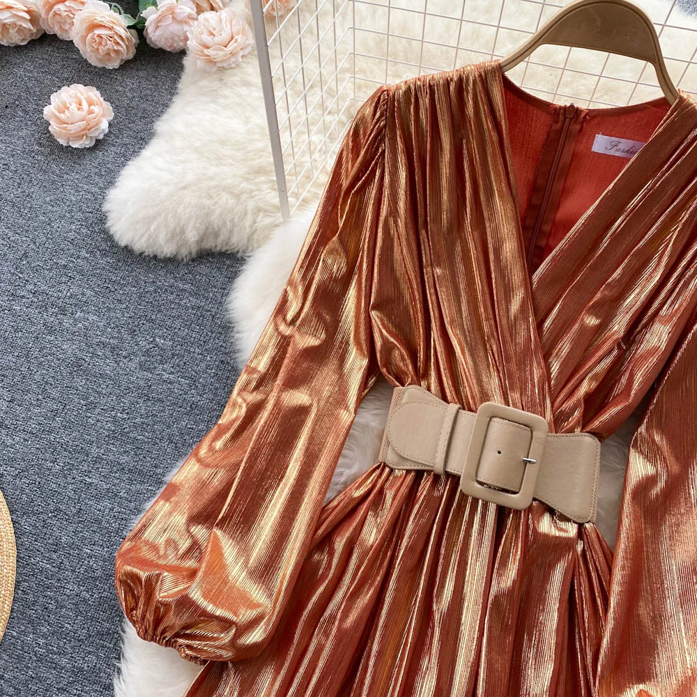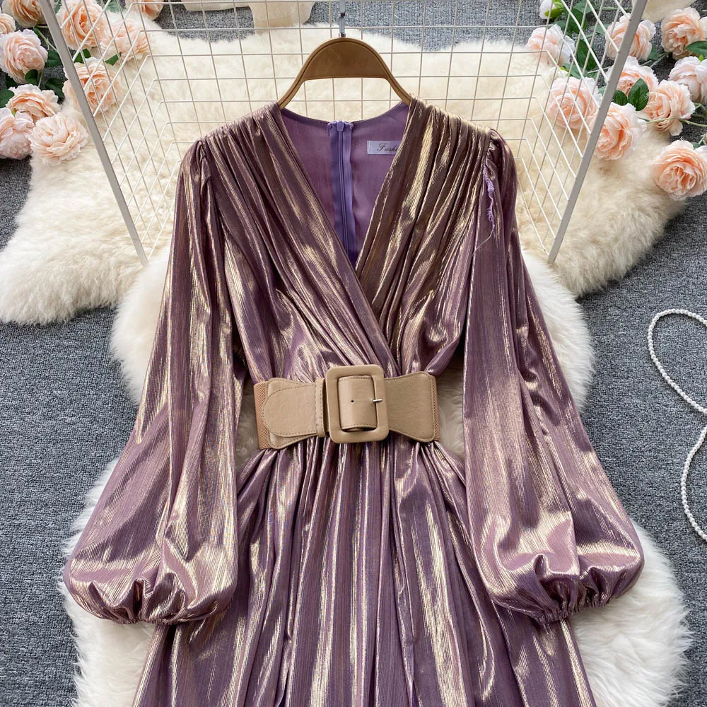 Znbbw Spring Autumn Women's Long Sleeve Dress V-neck Fashion Sexy Waist Long Dress Women Dresses for Women Party D0725