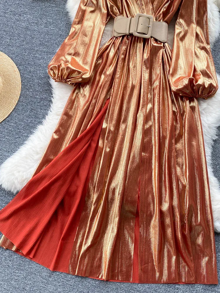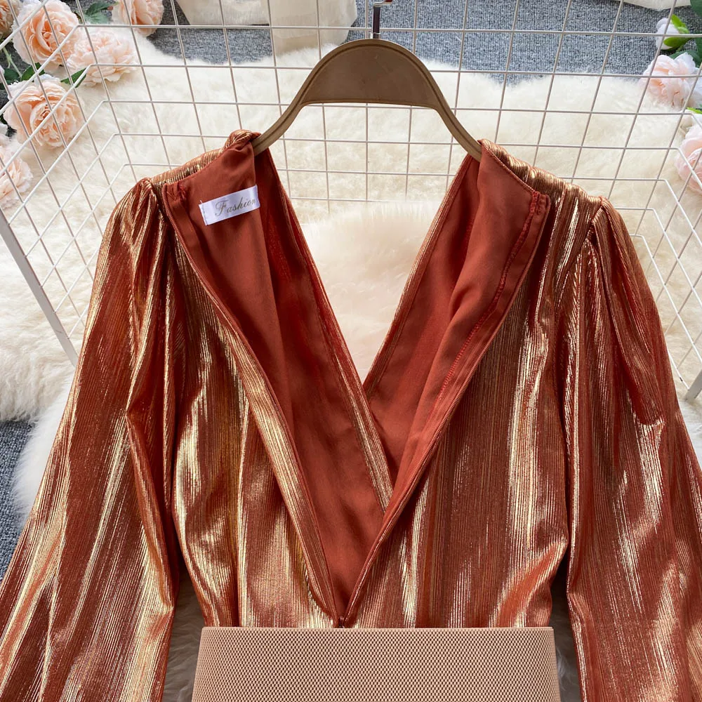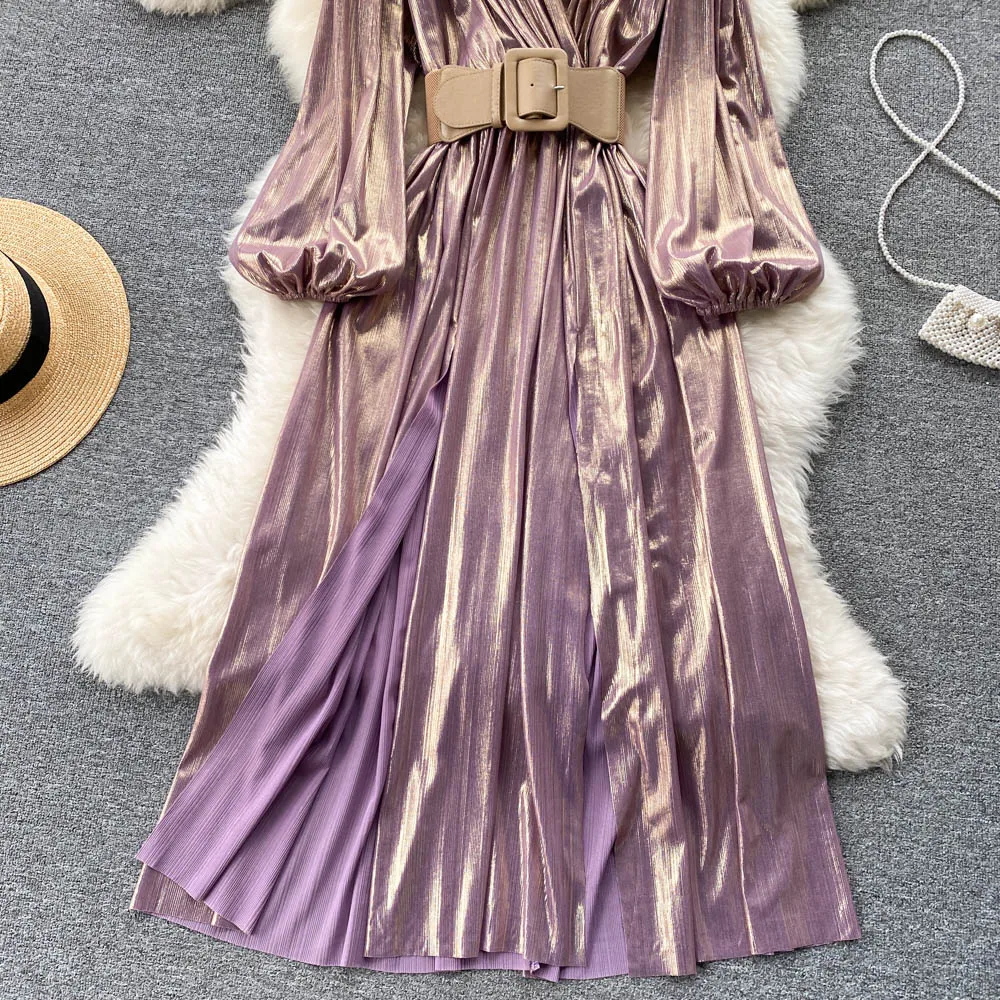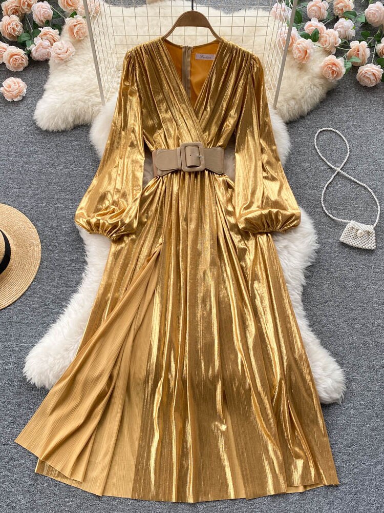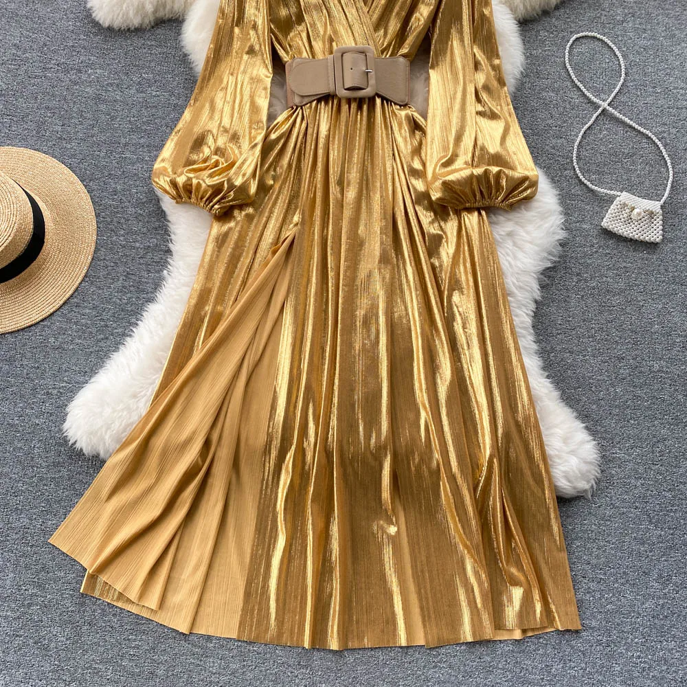 Znbbw Spring Autumn Women's Long Sleeve Dress V-neck Fashion Sexy Waist Long Dress Women Dresses for Women Party D0725
