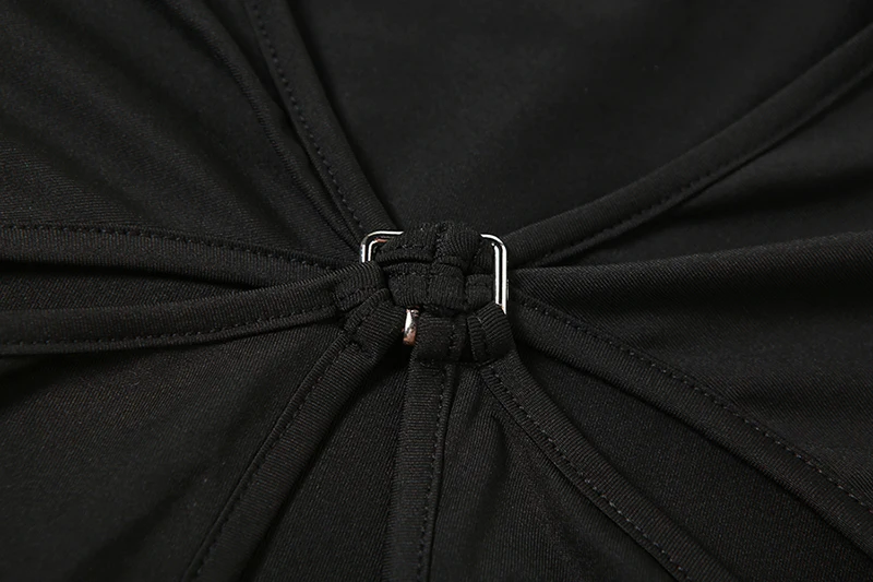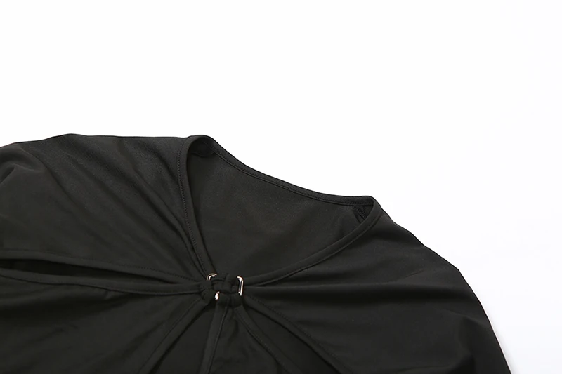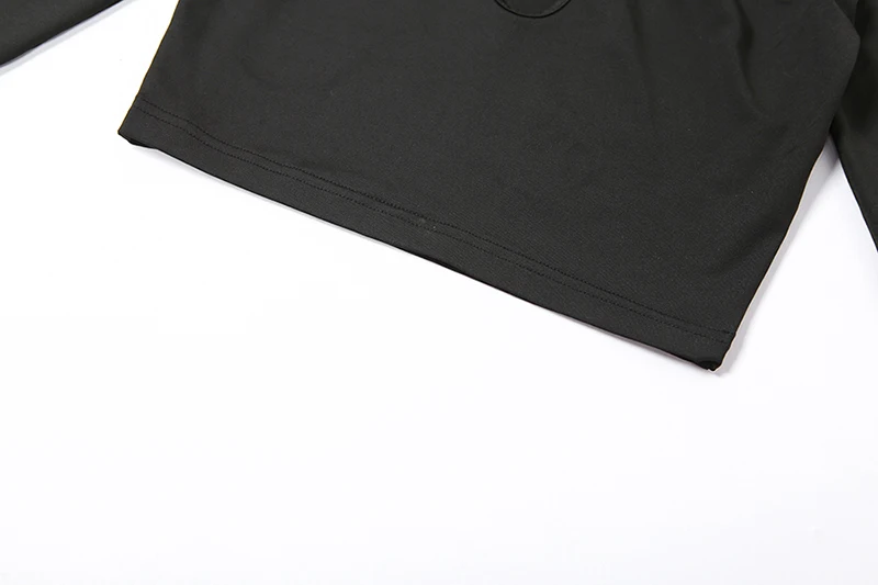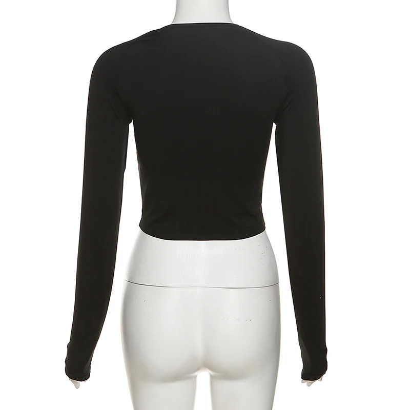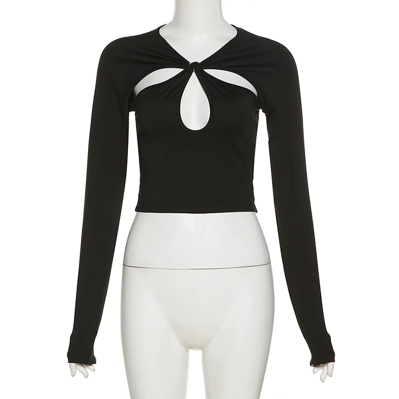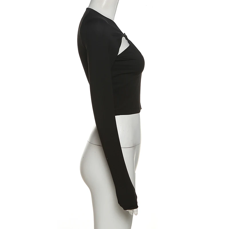 Znbbw Spring Fall Long Sleeve Cropped Corset Women Top Sexy Aesthetic Club O Neck Fairy Grunge Black Cut Out T-Shirt