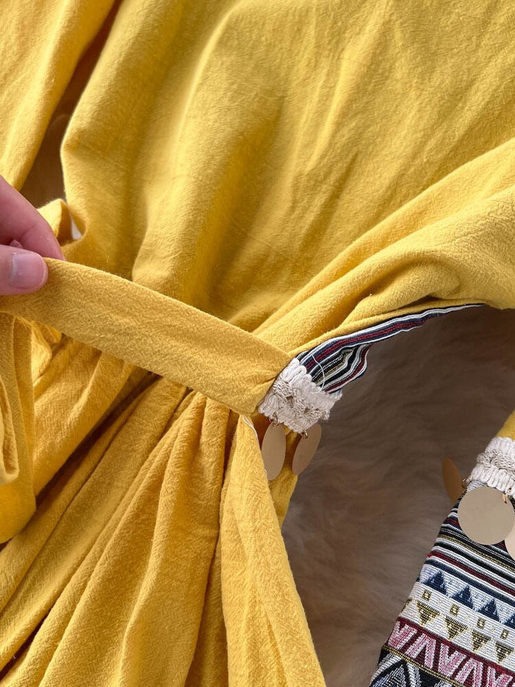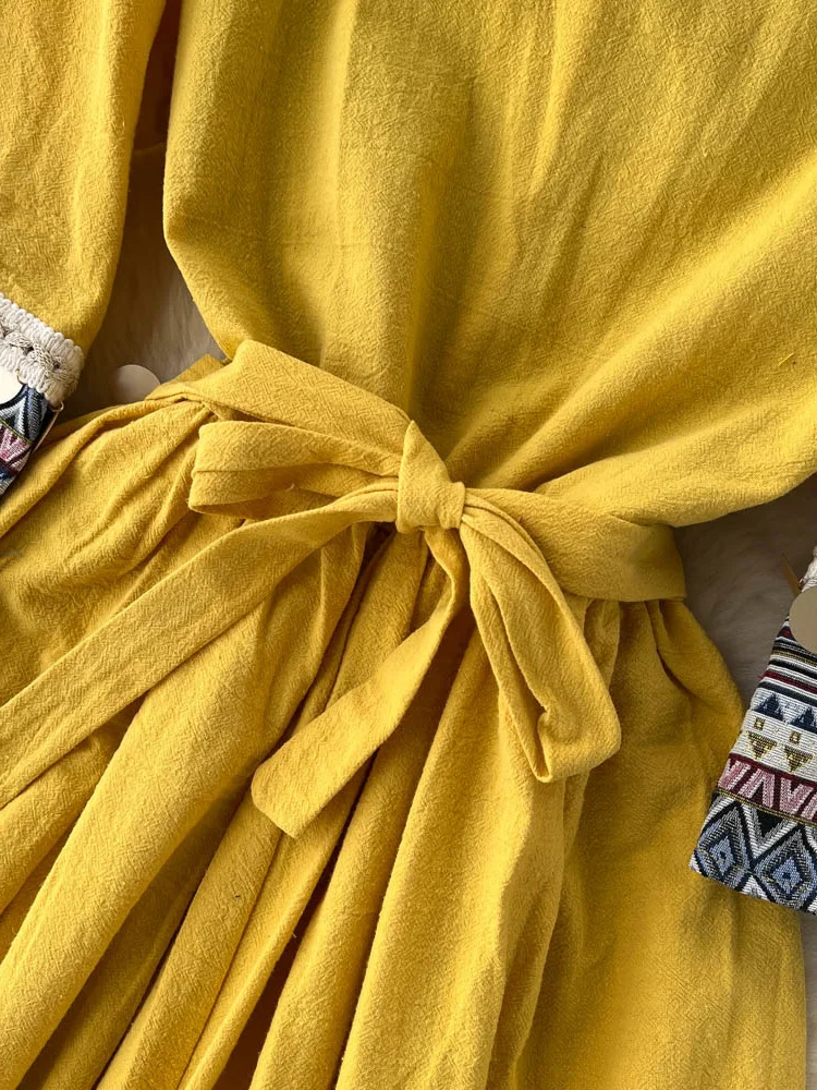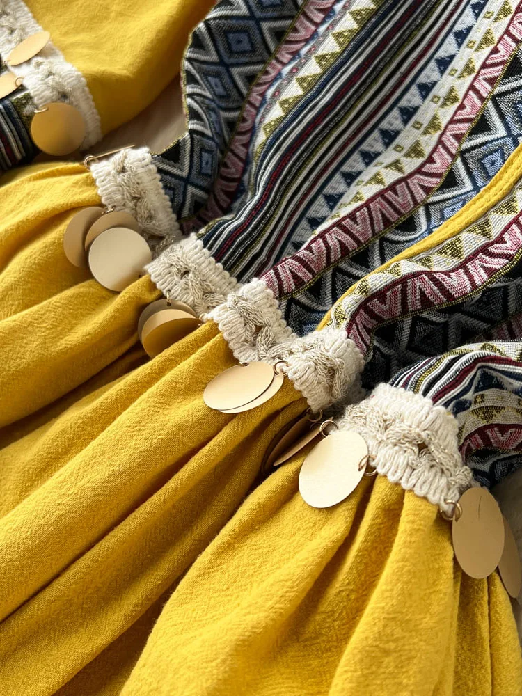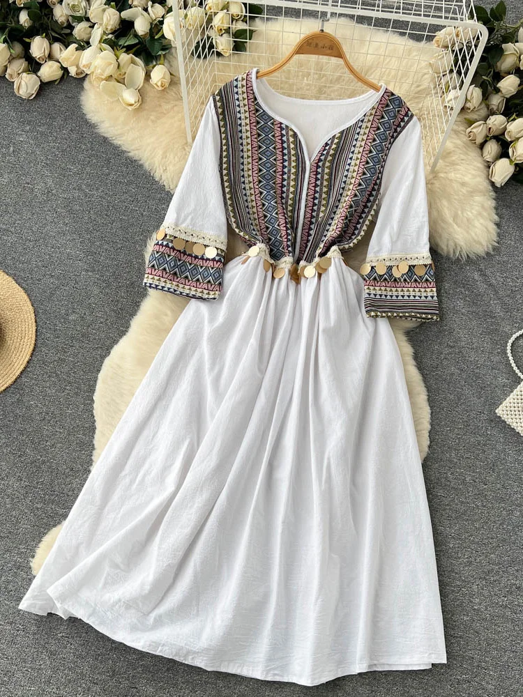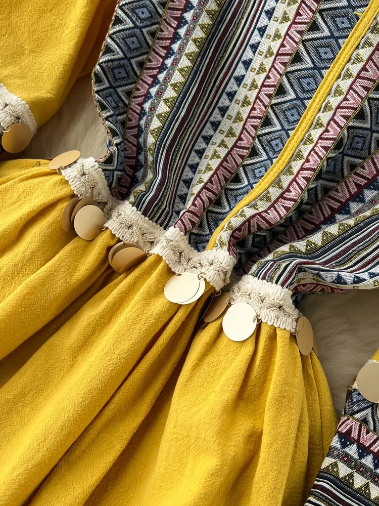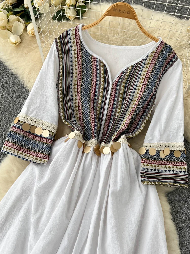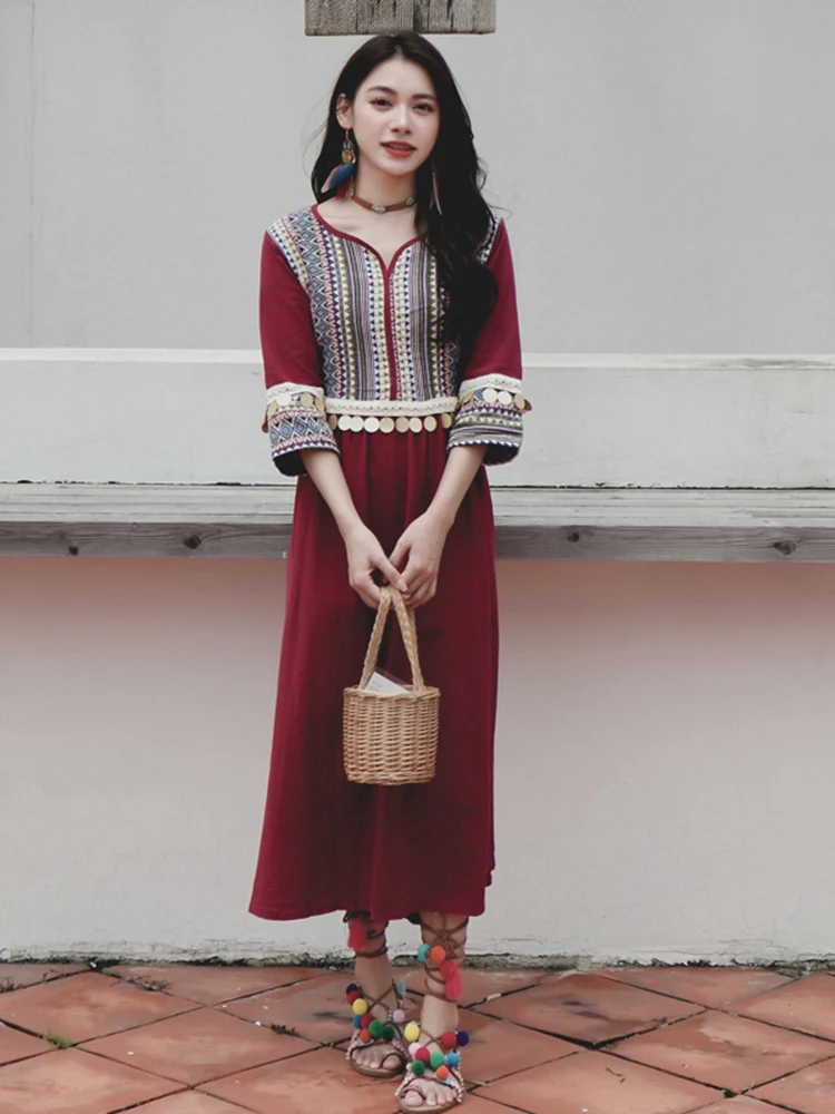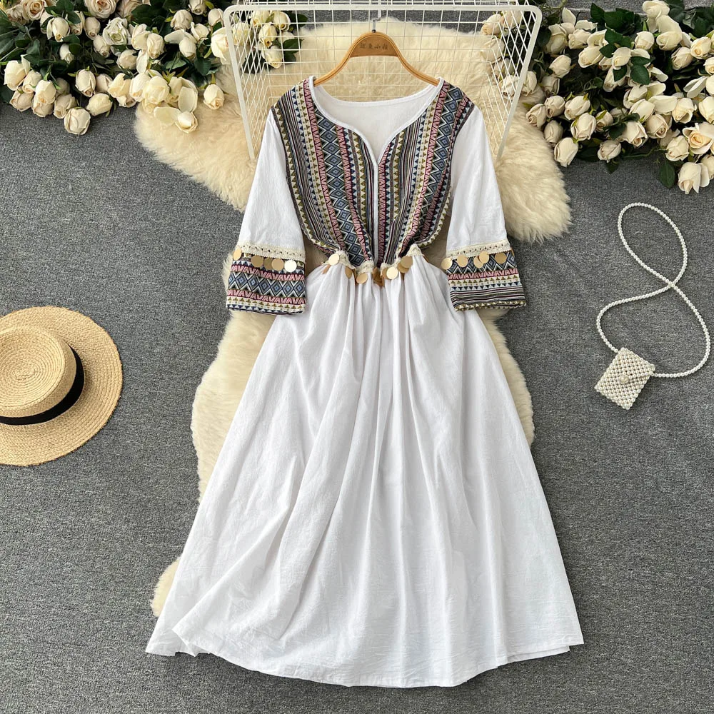 Znbbw Summer High-end Sense of Cold Wind Waist Thin Printed Long-sleeved Female Dress Beautiful V-neck Long Dress Women D1490