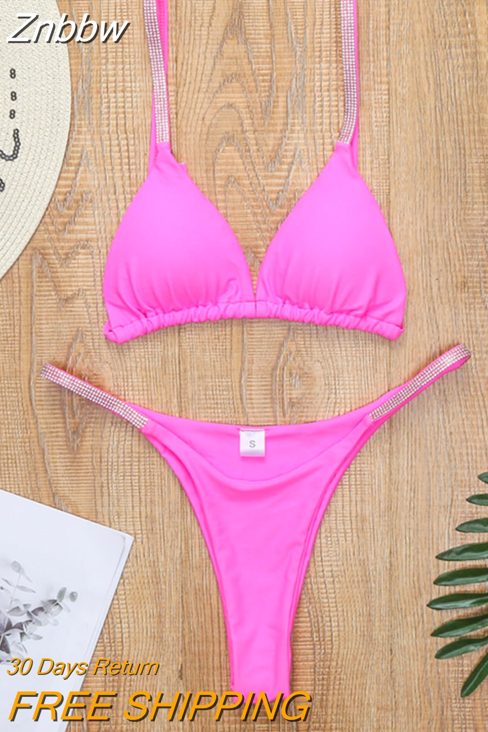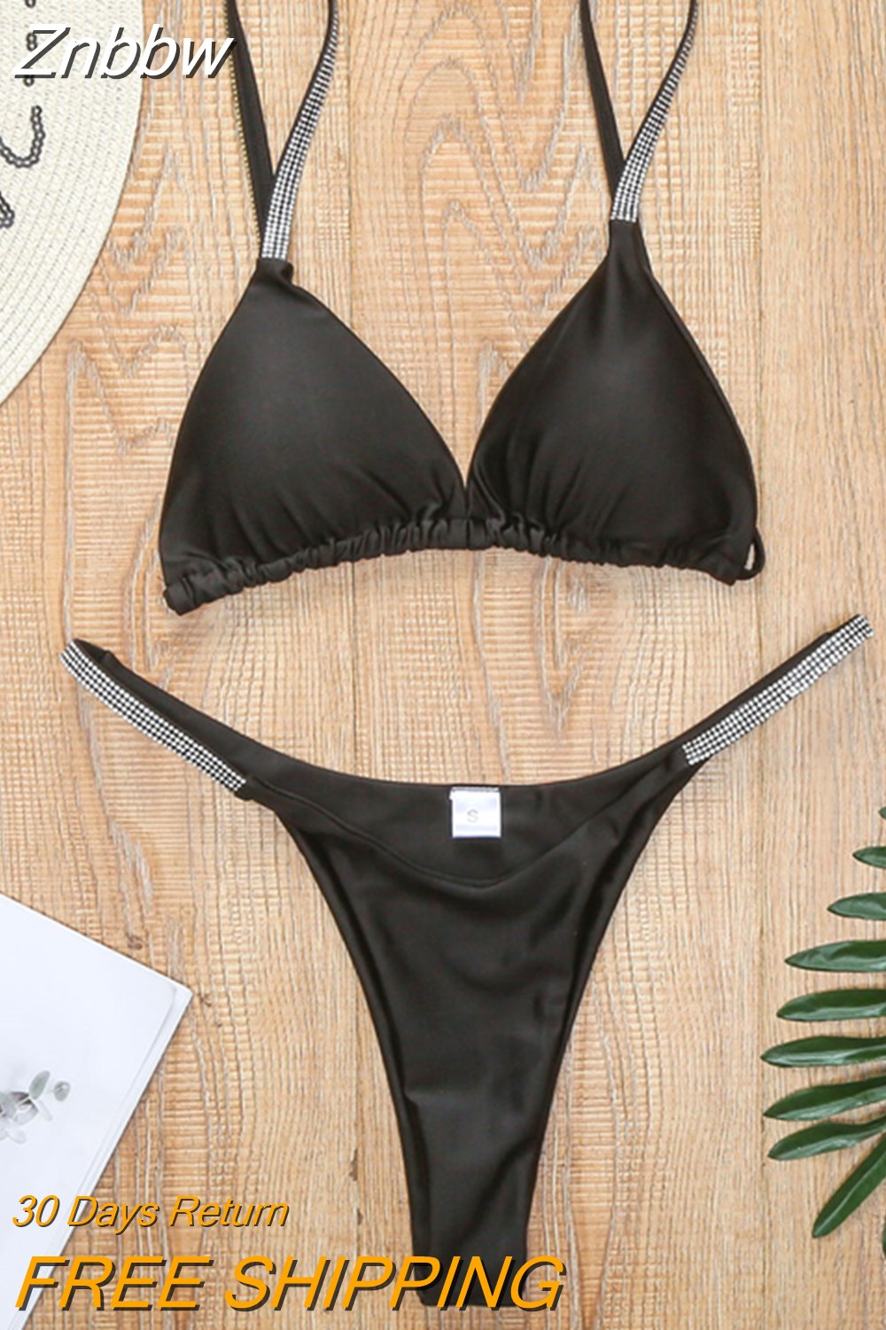 Znbbw Women 2023 Sexy Micro Bikini Brazilian Solid Black G-string Swimsuits Bathers Bathing Suit 2 Piece Set Traje De Bano