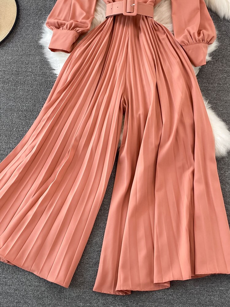 Znbbw Women 2023 spring French Elegant Waist Thin High Waist Square Collar Wide Leg Pleated Fashion Wide Leg Jumpsuit female D0716