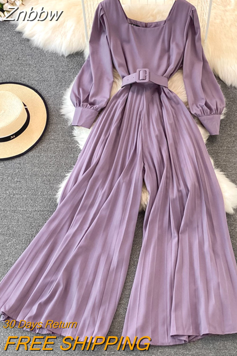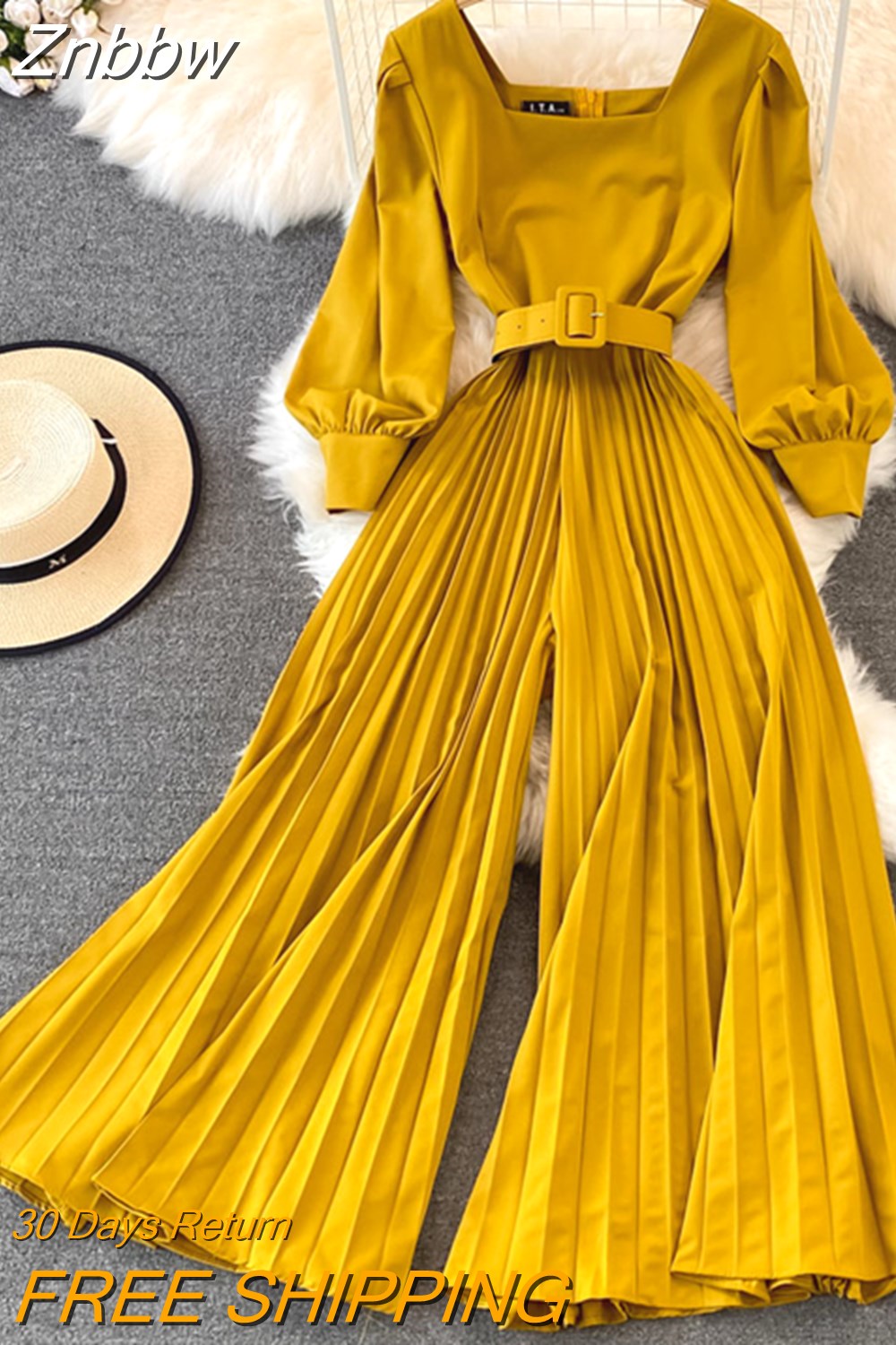 Znbbw Women 2023 spring French Elegant Waist Thin High Waist Square Collar Wide Leg Pleated Fashion Wide Leg Jumpsuit female D0716