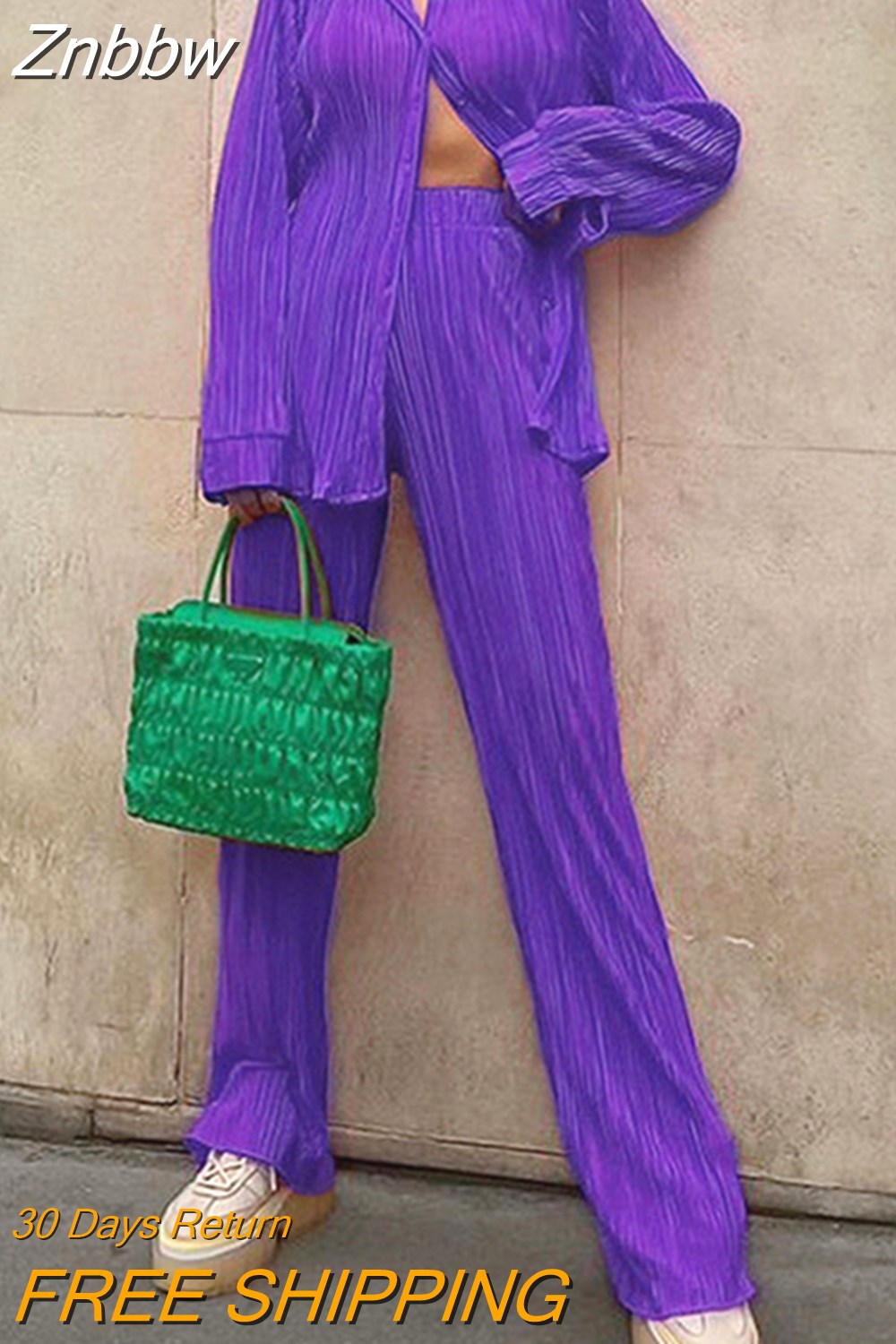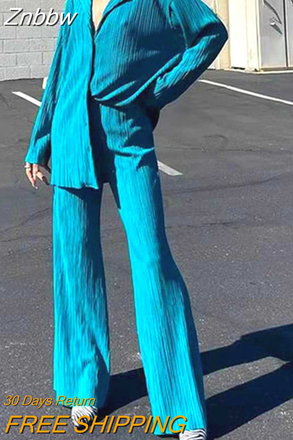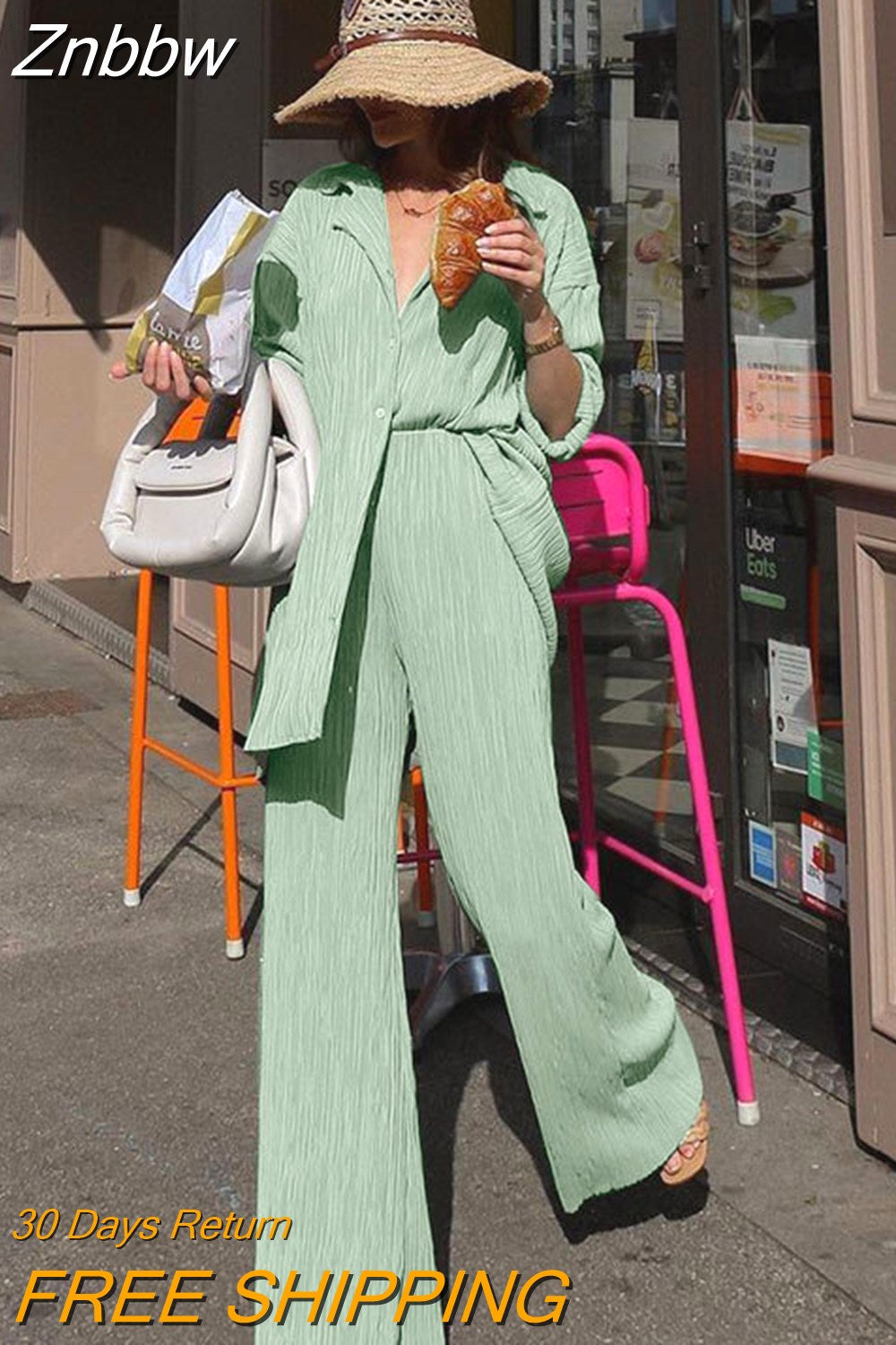 Znbbw Women Two Piece Set Loose Elegant Pleated Blouses and High Waist Wide Leg Trousers Casual Matching Sets Ladies Female Outfits