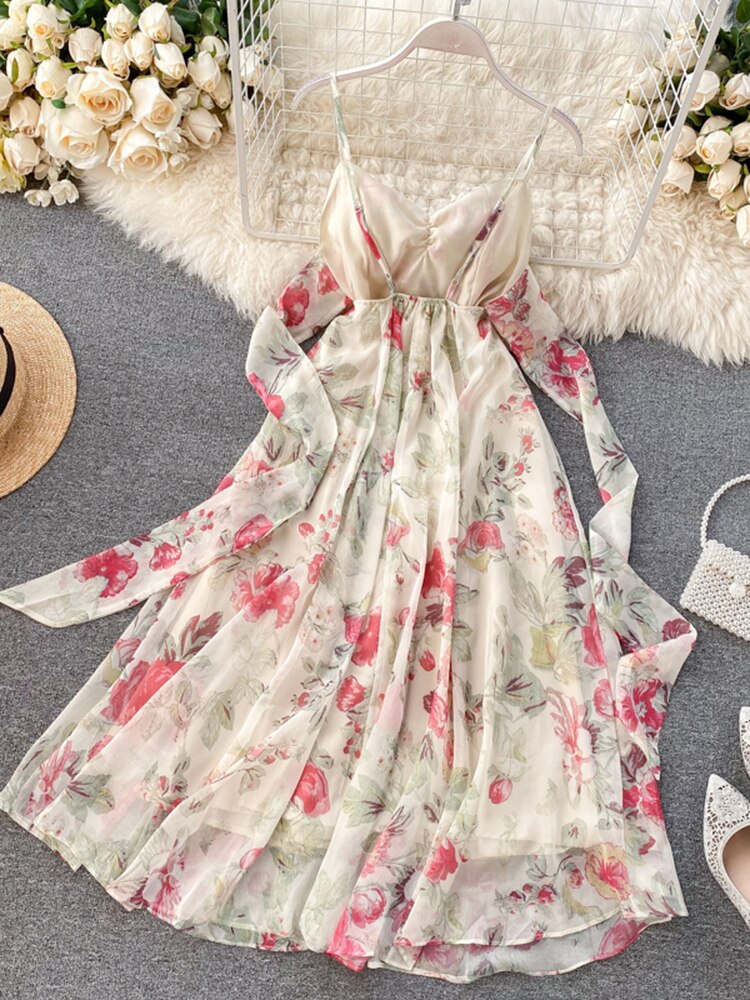 Znbbw Women's Beach Dress Goddess Seaside Vacation Style Sexy Open-back Strapless Bow Dress Super Fairy Print A-line Dress Y753