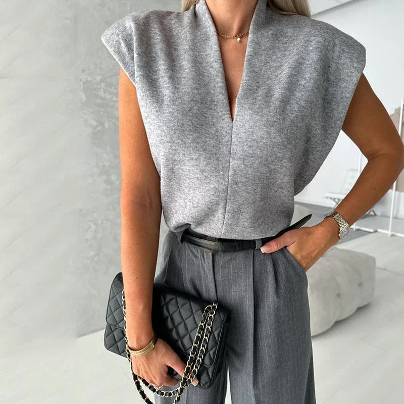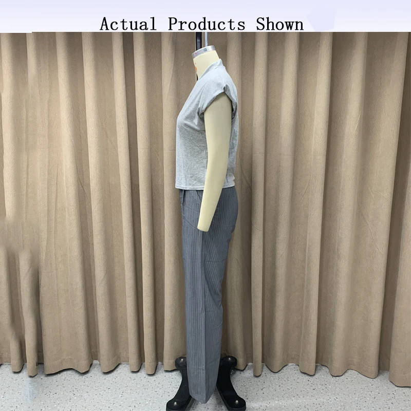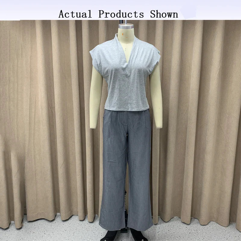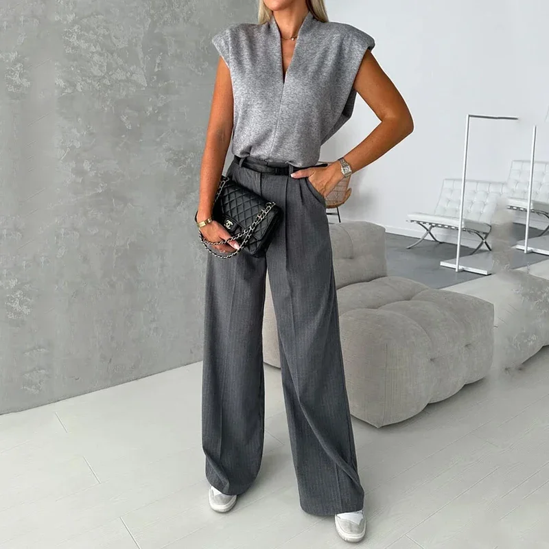 Znbbw 2 Piece Set Autumn Women Office Solid V Neck Sleeveless Vest Top Casual Loose Wide Legs With Pockets Pants Set Streetwear