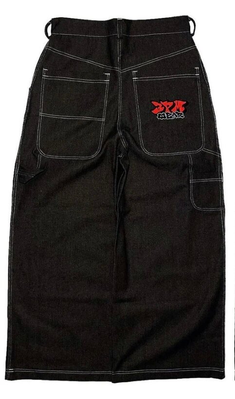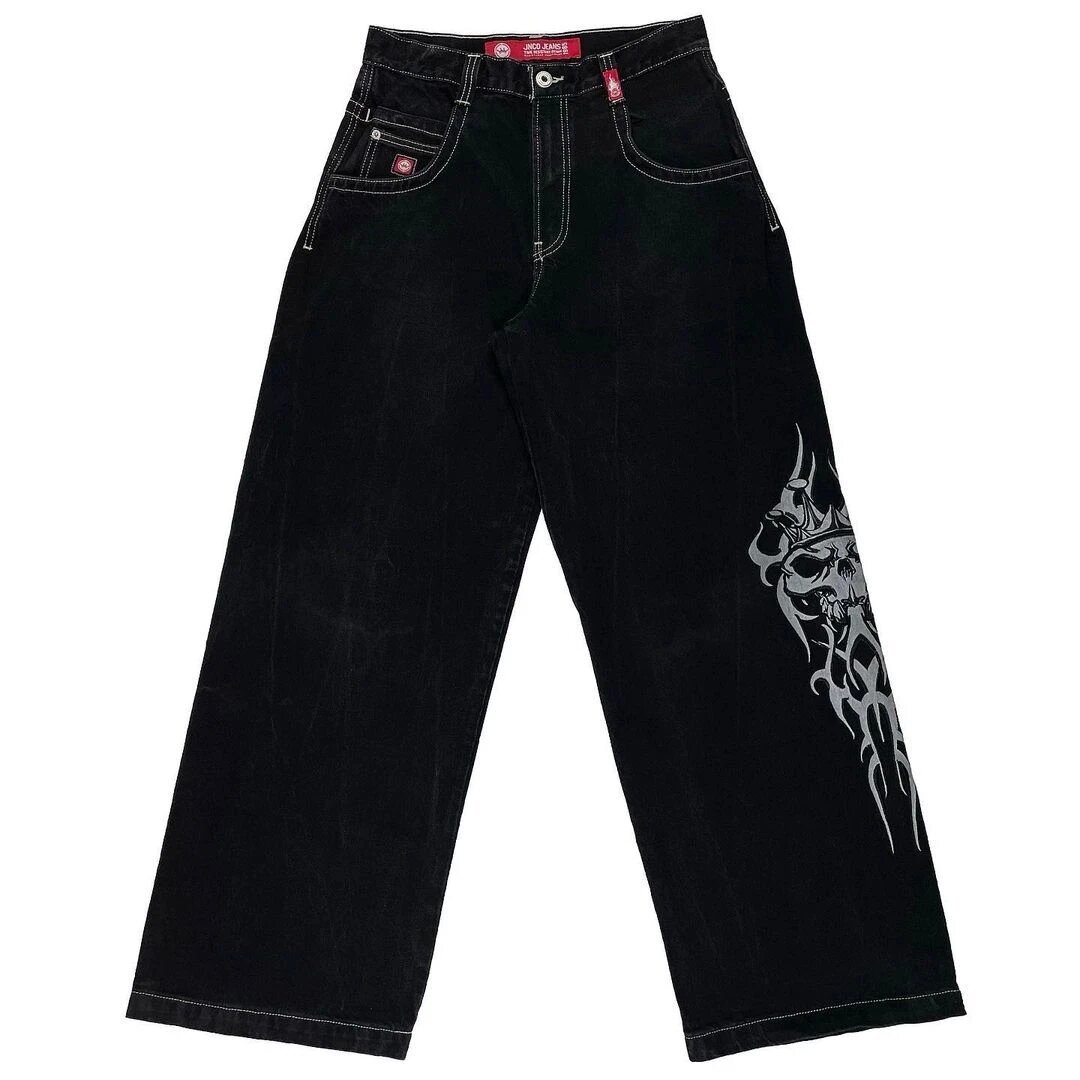 Znbbw Baggy Jeans Street Hip-Hop Rock Pattern Harajuku Wide-Legged Straight-Leg Pants
