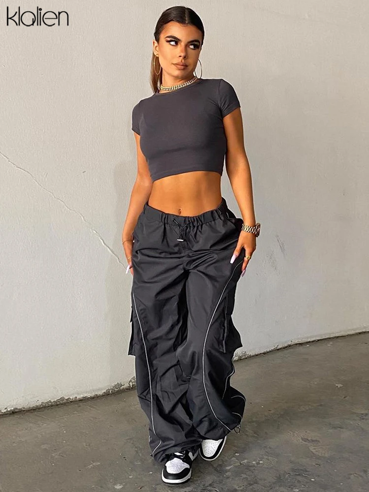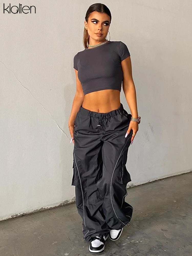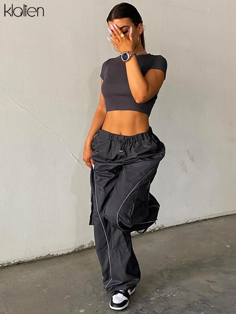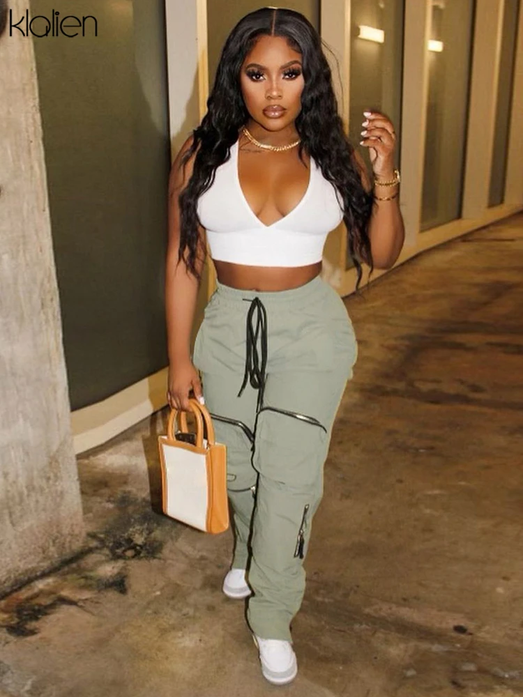 Znbbw Fashion Casual Trousers High Waist Stretch Straight Cargo Pants Women Streetwear Solid Sports Style Overalls Pants