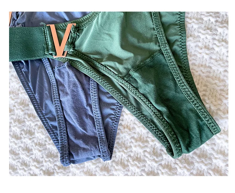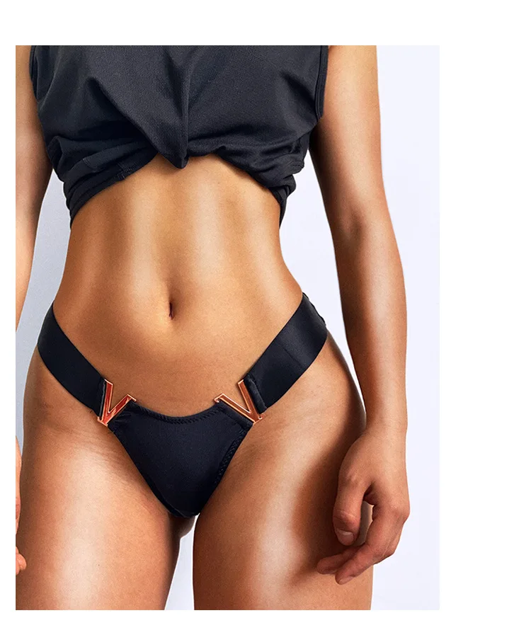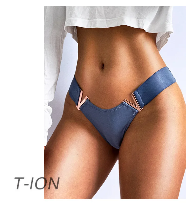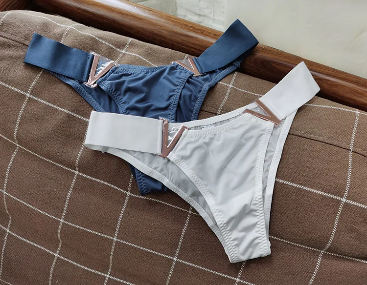 znbbw Fashion Sexy Panties Seamless Women Underwear Low Rise Thongs V-Shaped Metal Decor Panties Bikini Briefs High Fork Briefs
